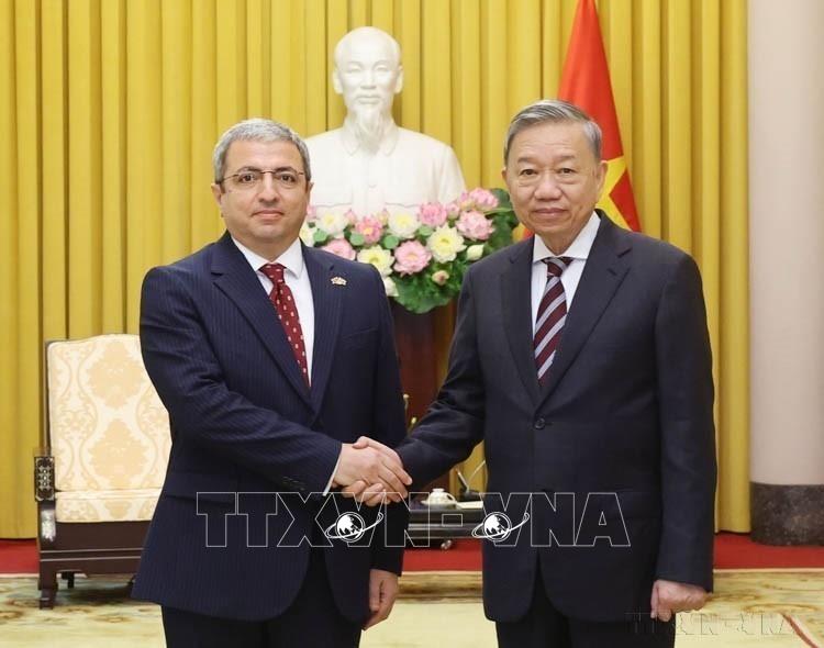 Chiều 16/7/2024, tại Phủ Chủ tịch, Chủ tịch nước Tô Lâm tiếp Đại sứ Azerbaijan tại Việt Nam Shovgi Kamal Oglu Mehdizade. Ảnh: Nhan Sáng-TTXVN