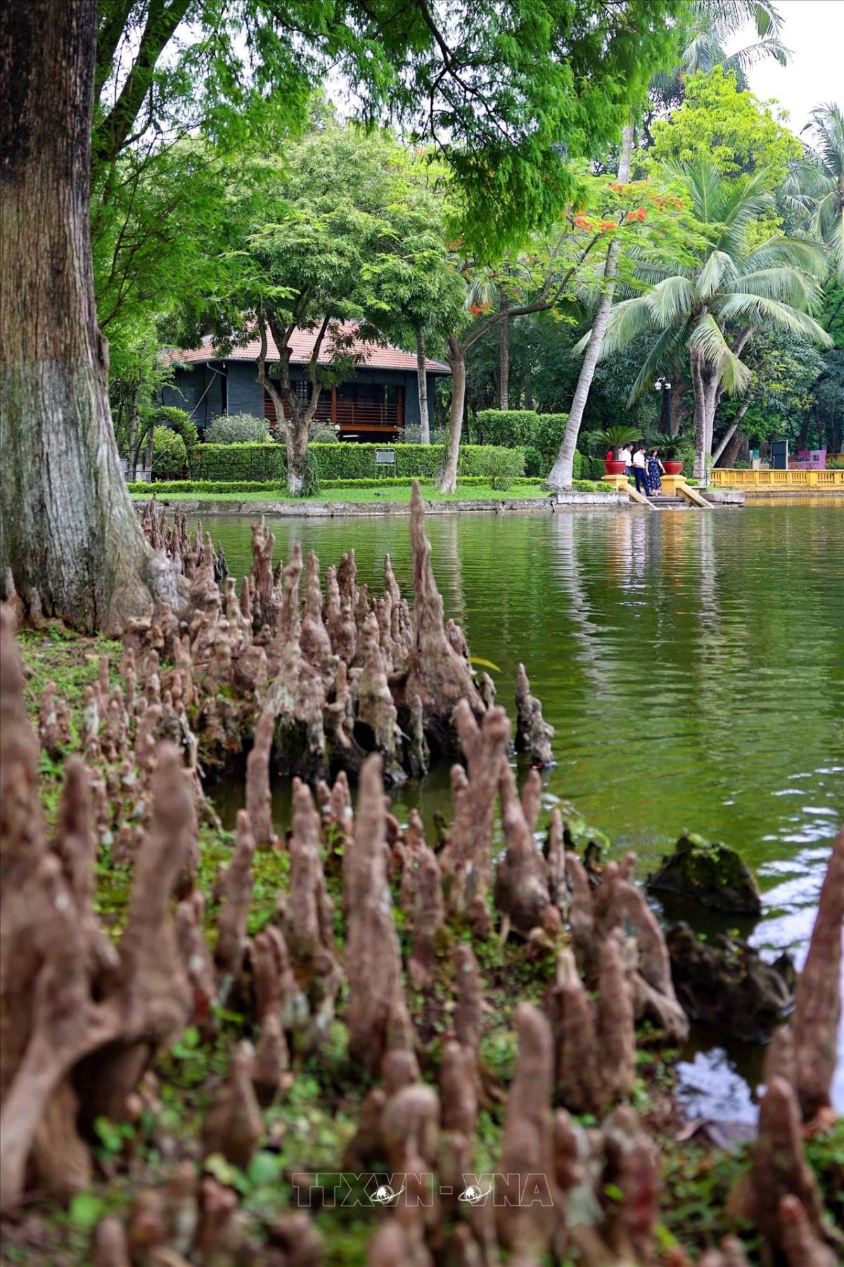 Cây Bụt mọc ven ao cá, trầm mặc nhưng tạo ra một dấu ấn trong không gian thoáng đạt mà thiêng liêng trong Khu di tích Chủ tịch Hồ Chí Minh tại Phủ Chủ tịch. Ảnh: Thanh Tùng - TTXVN