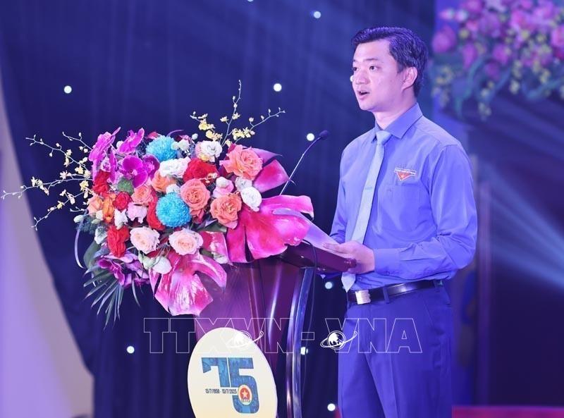 Đồng chí Nguyễn Minh Triết, Bí thư BCH Trung ương Đoàn TNCS Hồ Chí Minh, Chủ tịch Trung ương Hội Sinh viên Việt Nam trình bày Diễn văn kỷ niệm 75 năm ngày truyền thống Lực lượng TNXP Việt Nam (15/7/2025). Ảnh: Minh Đức – TTXVN