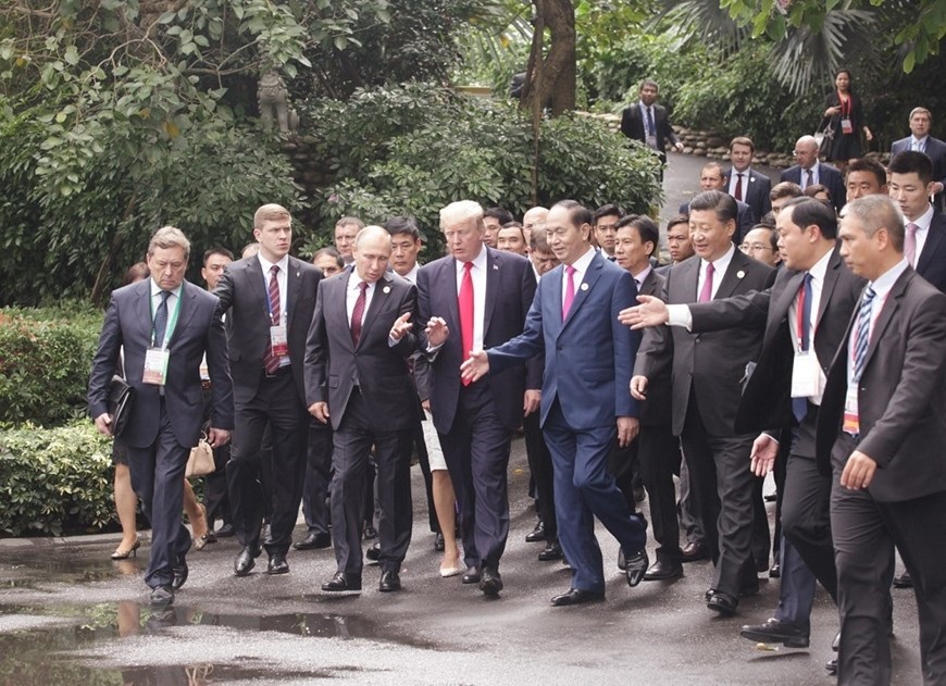 Chủ tịch nước Trần Đại Quang và các Trưởng đoàn tham dự hội nghị. (Ảnh: TTXVN)