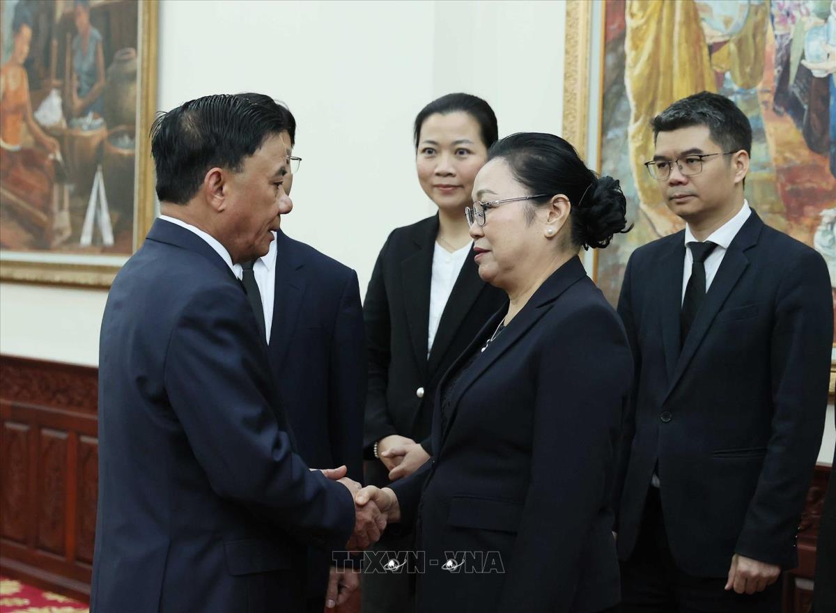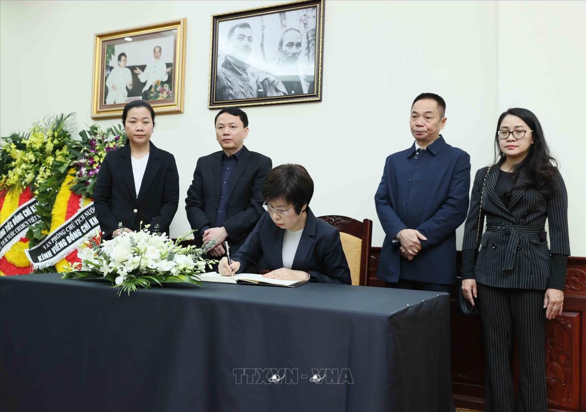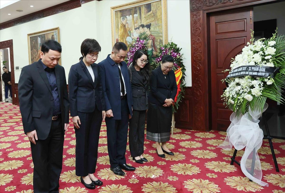Hà Nội (TTXVN 4/4/2025) Sáng 4/4, Ủy viên Bộ Chính trị, Thường trực Ban Bí thư Trần Cẩm Tú đã đến Đại sứ quán nước Cộng hòa Dân chủ Nhân dân Lào tại Hà Nội viếng đồng chí Khamtay Siphandone. Phó Chủ tịch Quốc hội Nguyễn Khắc Định thay mặt Quốc hội Việt Nam đến viếng đồng chí Khamtay Siphandone; bà Vũ Việt Trang, Bí thư Đảng ủy, Tổng Giám đốc Thông tấn xã Việt Nam dẫn đầu Đoàn đại biểu Thông tấn xã Việt Nam đến viếng, ghi sổ tang đồng chí Khamtay Siphandone. Tại trụ sở Lãnh sự quán Cộng hòa Dân chủ Nhân dân Lào tại Thành phố Hồ Chí Minh, đoàn đại biểu Thành ủy, HĐND, UBND, Ủy ban MTTQ Việt Nam Thành phố Hồ Chí Minh do đồng chí Nguyễn Thanh Nghị, Phó Bí thư Thường trực Thành ủy Thành phố Hồ Chí Minh, dẫn đầu đến viếng và ghi sổ tang Đại tướng Khamtay Siphandone