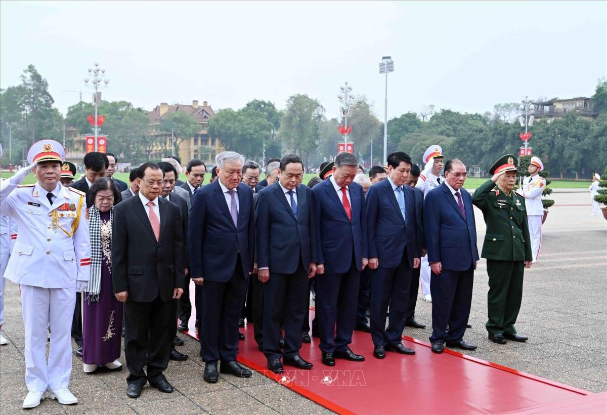 Đoàn đại biểu Lãnh đạo, nguyên Lãnh đạo Đảng, Nhà nước do Tổng Bí thư Tô Lâm dẫn đầu thành kính tưởng niệm Chủ tịch Hồ Chí Minh (29/4/2025). Ảnh: An Đăng - TTXVN
