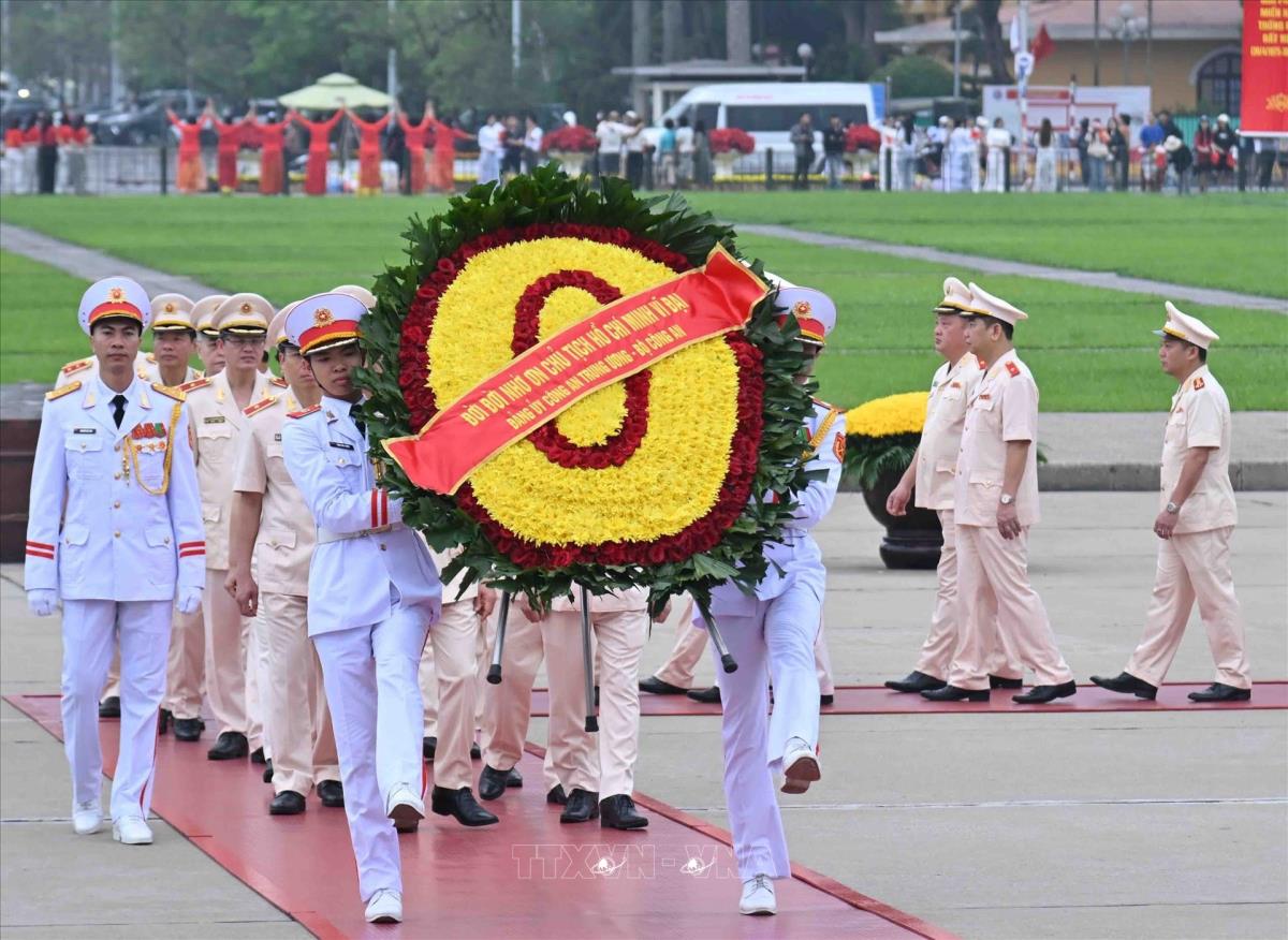 Đoàn đại biểu Đảng ủy Công an Trung ương - Bộ Công an thành kính tưởng niệm Chủ tịch Hồ Chí Minh (29/4/2025). Ảnh: An Đăng - TTXVN