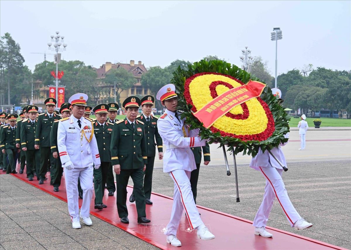 Đoàn đại biểu Quân ủy Trung ương - Bộ Quốc phòng thành kính tưởng niệm Chủ tịch Hồ Chí Minh (29/4/2025). Ảnh: An Đăng - TTXVN