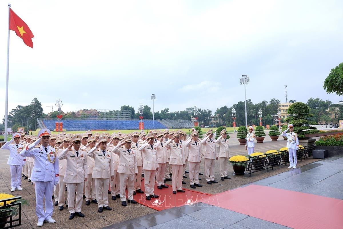 Đoàn đại biểu Đảng ủy Công an Trung ương, Bộ Công an thành kính tưởng nhớ Chủ tịch Hồ Chí Minh (17/8/2025). Ảnh: Tuấn Anh - TTXVN