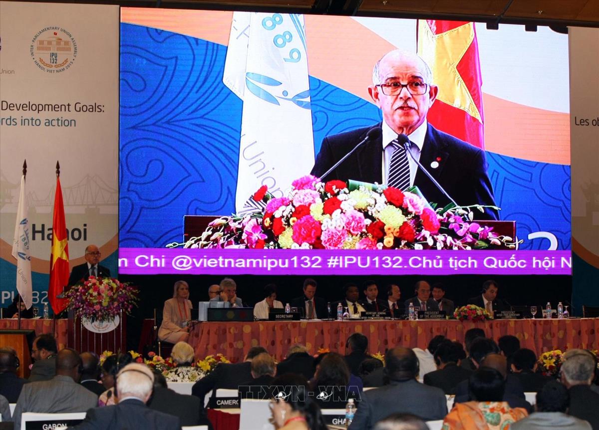 Đại biểu phát biểu tại Lễ bế mạc Đại hội đồng Liên minh Nghị viện Thế giới IPU-132, ngày 1/4/2015. Ảnh: TTXVN