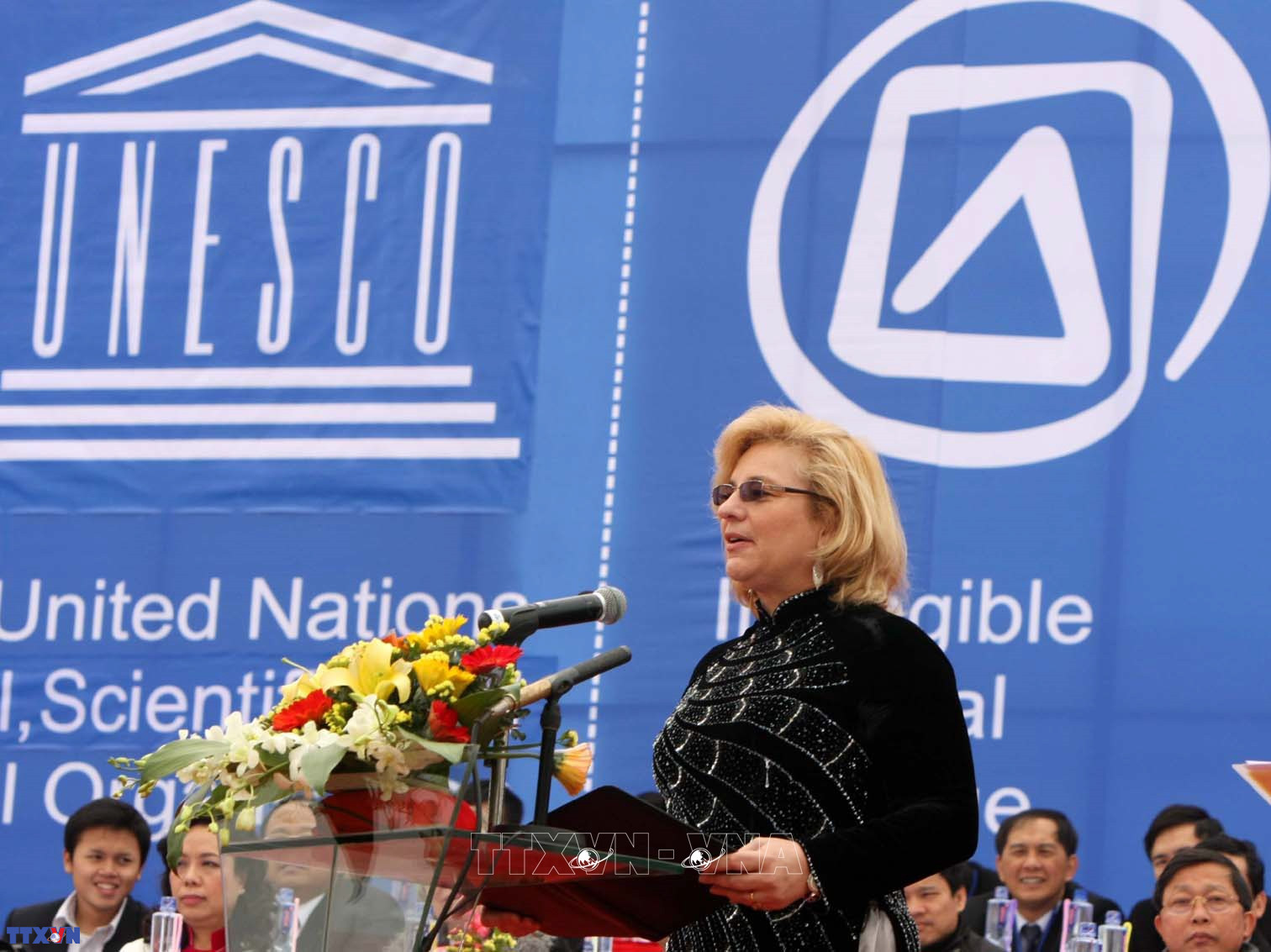Bà Katherine Muller-Trưởng văn phòng UNESCO tại Hà Nội phát biểu tại buổi lễ. Ảnh: Nhật Anh - TTXVN