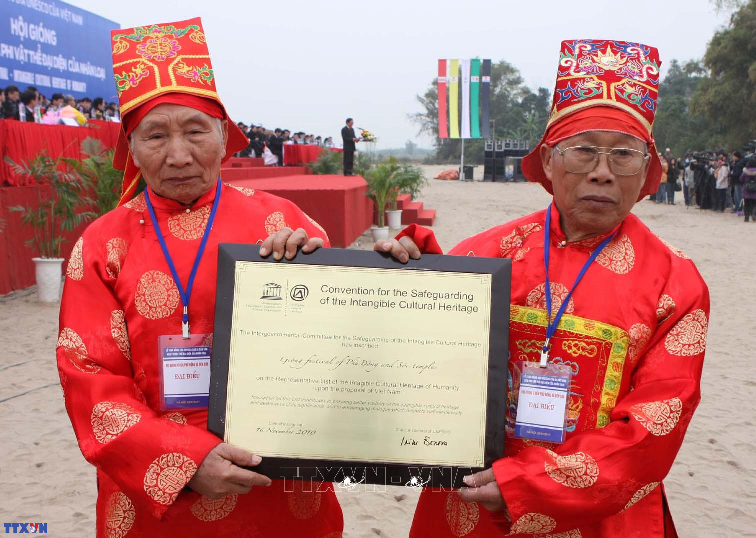 Hà Nội (TTXVN 22/01/2011) Ngày 22/1/2011, tại xã Phù Đổng (Gia Lâm - Hà Nội) đã diễn ra Lễ đón bằng Di sản phi vật thể của UNESCO cho Hội Gióng đền Phù Đổng và đền Sóc. Ngày 16/11/2010, tại Kỳ họp lần thứ 5, Ủy ban liên chính phủ theo Công ước năm 2003 của UNESCO đã chính thức công nhận Hội Gióng đền Phù Đổng và đền Sóc là Di sản văn hóa phi vật thể đại diện của nhân loại.
