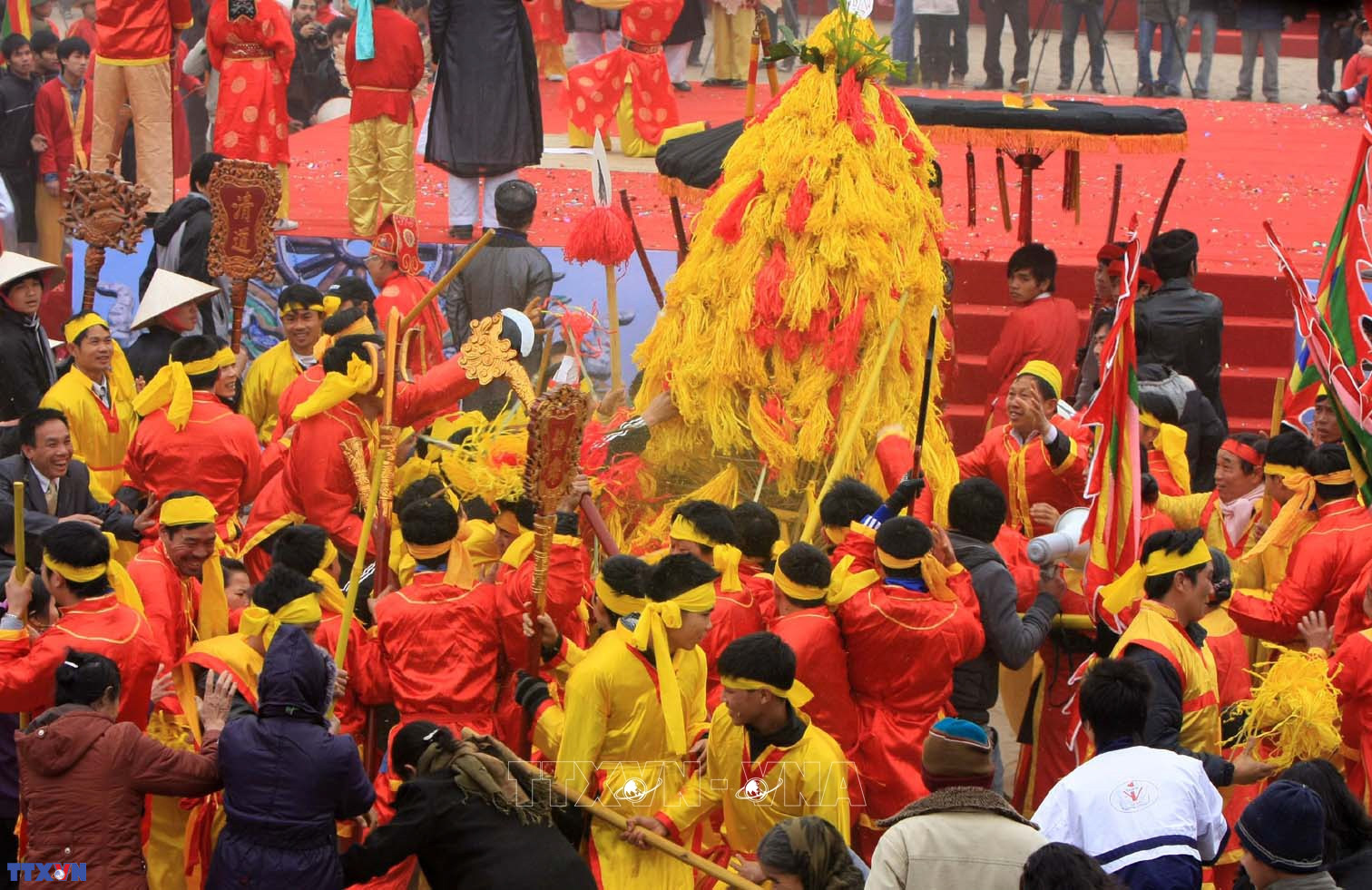 Tái hiện lại hình ảnh Lễ hội Gióng tại xã Phù Đổng nhân dịp đón bằng công nhận. Ảnh: Nhật Anh - TTXVN