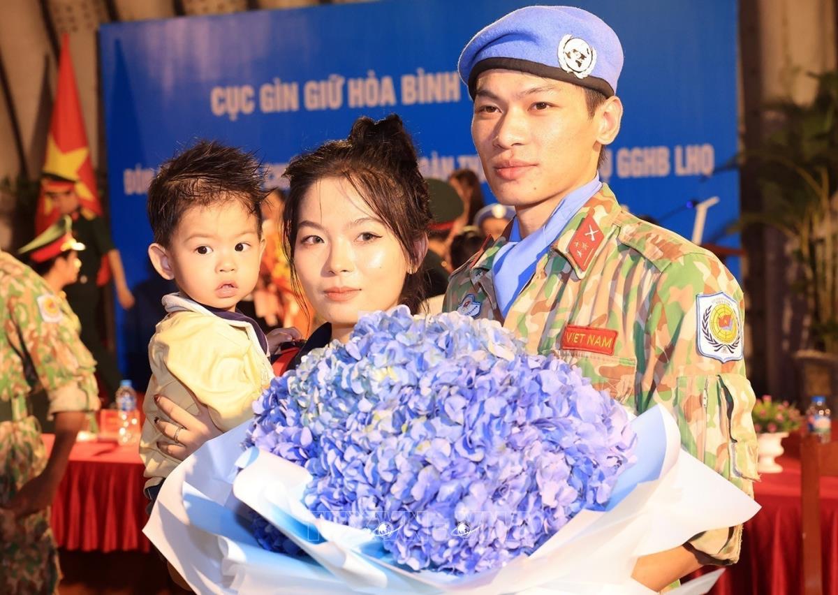 Cán bộ, nhân viên Bệnh viện dã chiến 2.6 trở về với gia đình sau một năm thực hiện nhiệm vụ quốc tế (26/9/2025). Ảnh: Tuấn Anh - TTXVN