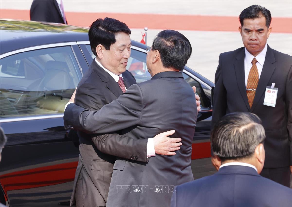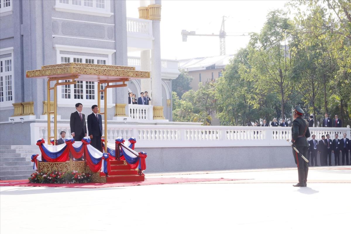 [Photo] Lễ đón chính thức Chủ tịch nước Lương Cường thăm cấp Nhà nước CHDCND Lào
