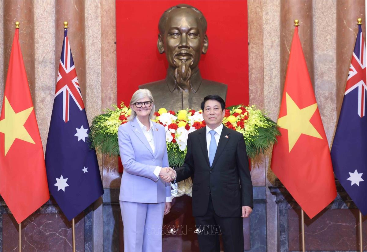 Chủ tịch nước Lương Cường và Toàn quyền Australia Sam Mostyn trước khi hôi đàm (10/9/2025). Ảnh: Lâm Khánh - TTXVN