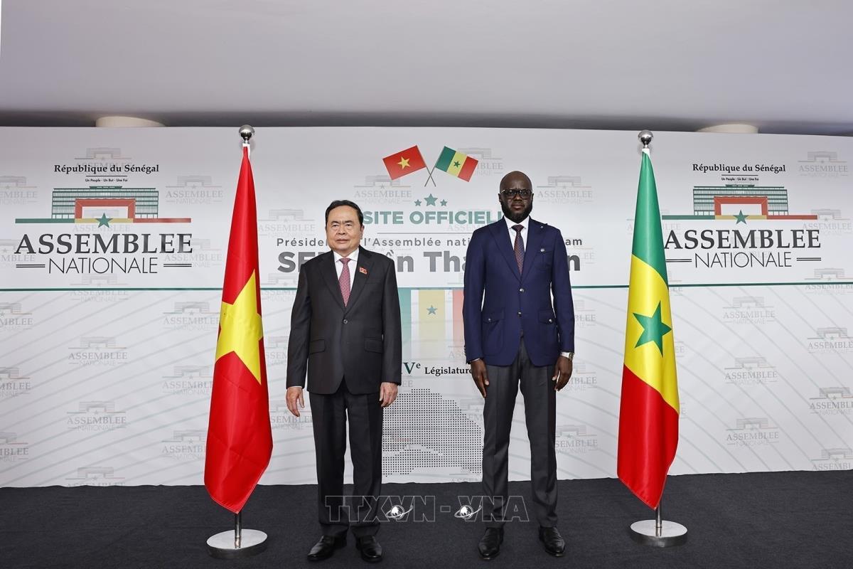 Hà Nội (TTXVN 23/7/2025) Sáng 23/7/2025, giờ địa phương (chiều tối cùng ngày, giờ Hà Nội), tại Trụ sở Quốc hội ở thủ đô Dakar, Chủ tịch Quốc hội Senegal Malick Ndiaye chủ trì Lễ đón Chủ tịch Quốc hội Trần Thanh Mẫn và đoàn đại biểu cấp cao Việt Nam thăm chính thức Cộng hòa Senegal.