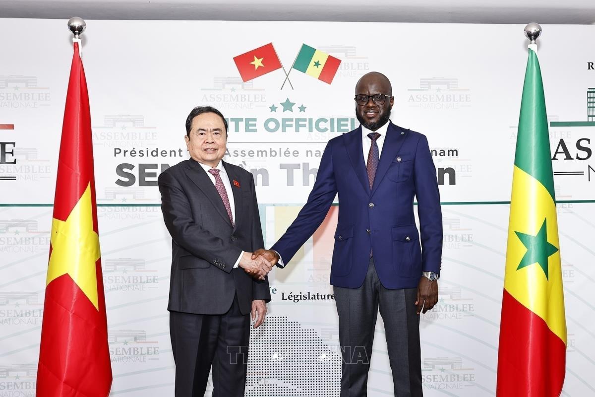 Chủ tịch Quốc hội Malick Ndiaye đón Chủ tịch Quốc hội Trần Thanh Mẫn thăm chính thức Cộng hòa Senegal (Sáng 23/7/2025, giờ địa phương). Ảnh: Doãn Tấn – TTXVN
