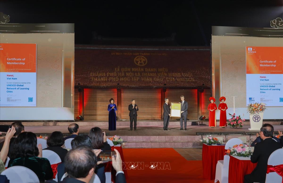 [Photo] Lễ đón nhận danh hiệu thành phố Hà Nội là thành viên Mạng lưới Thành phố học tập toàn cầu của UNESCO