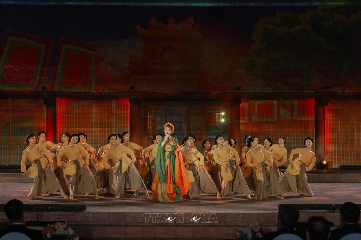 Chương trình nghệ thuật chào mừng tại lễ đón nhận danh hiệu thành phố Hà Nội là thành viên Mạng lưới Thành phố học tập toàn cầu của UNESCO (29/1/2026). Ảnh: Phan Phương – TTXVN