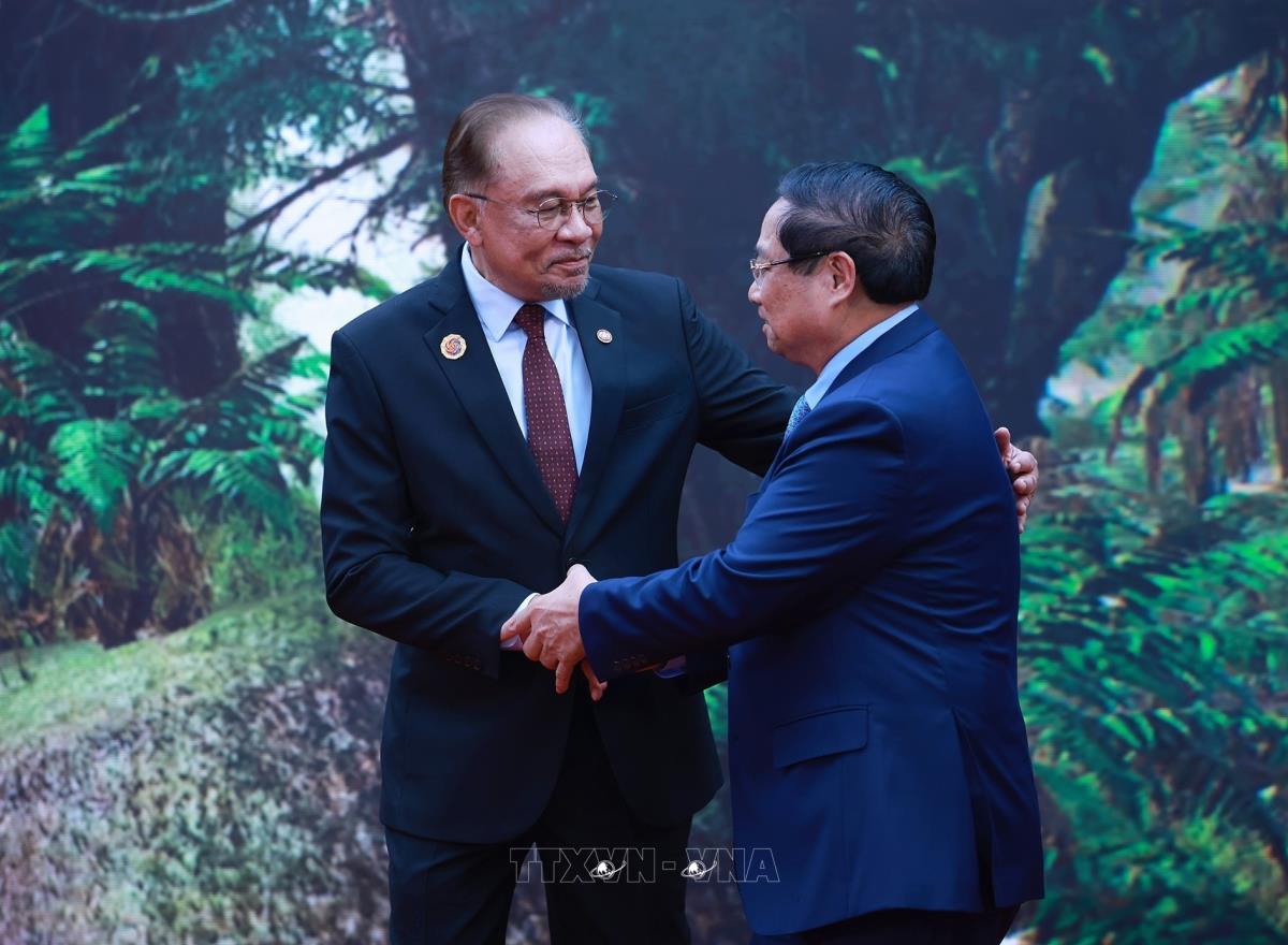 Thủ tướng Malaysia Anwar Ibrahim, Chủ tịch ASEAN 2025 đón Thủ tướng Phạm Minh Chính tham dự Hội nghị Cấp cao ASEAN lần thứ 47 và các Hội nghị Cấp cao liên quan (26/10/2025). Ảnh: Dương Giang-TTXVN