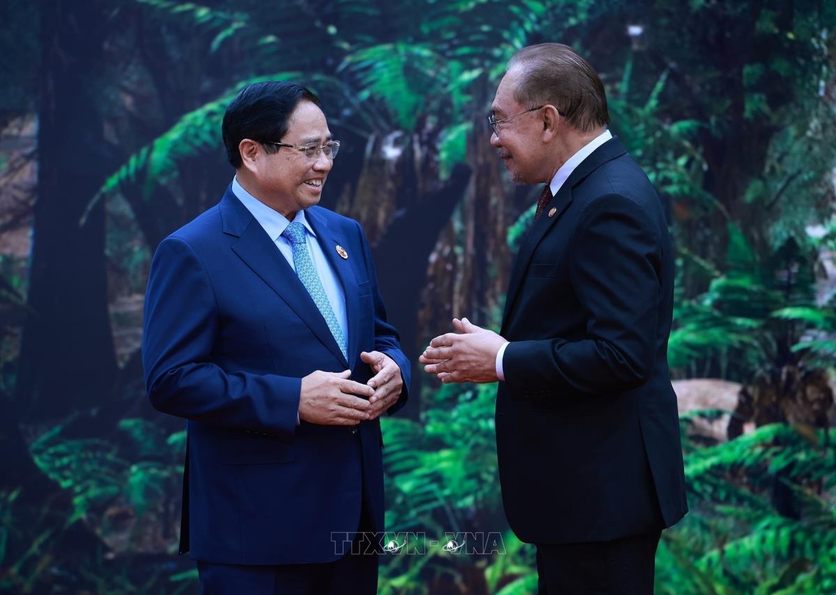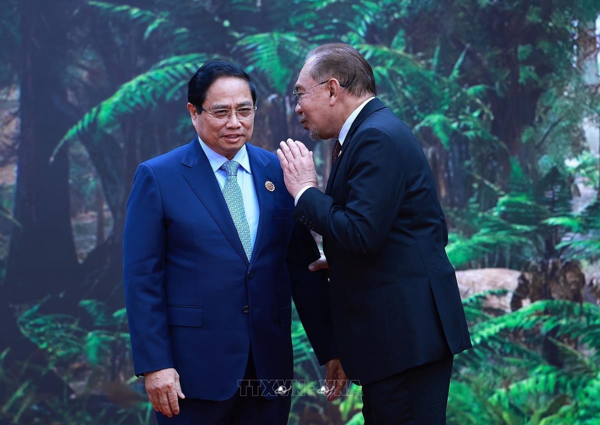 Thủ tướng Malaysia Anwar Ibrahim, Chủ tịch ASEAN 2025 đón Thủ tướng Phạm Minh Chính tham dự Hội nghị Cấp cao ASEAN lần thứ 47 và các Hội nghị Cấp cao liên quan (26/10/2025) Ảnh: Dương Giang-TTXVN