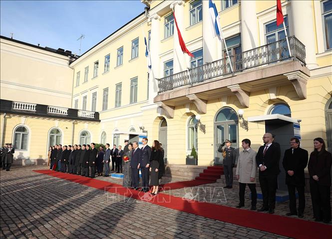 Hà Nội (TTXVN 21/10/2025) Theo đặc phái viên TTXVN, sáng 21/10 (theo giờ địa phương), lễ đón Tổng Bí thư Tô Lâm và Phu nhân Ngô Phương Ly cùng Đoàn đại biểu cấp cao Việt Nam thăm chính thức Cộng hòa Phần Lan theo lời mời của Tổng thống Phần Lan Alexander Stubb được tổ chức trọng thể tại Phủ Tổng thống. Tổng thống Cộng hòa Phần Lan Alexander Stubb và Phu nhân chủ trì Lễ đón chính thức.