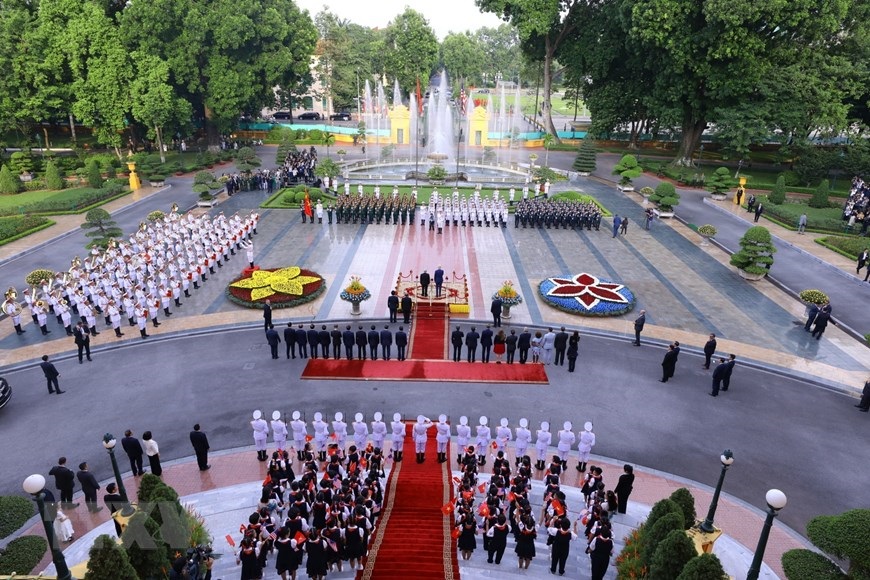 Toàn cảnh Lễ đón Tổng thống Hoa Kỳ Joe Biden thăm cấp Nhà nước tới Việt Nam. (Ảnh: Văn Điệp/TTXVN)