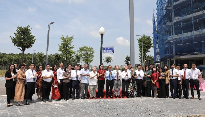 Nghi lễ gắn biển tên đường mang tên Trần Kim Xuyến, nguyên Đổng lý Văn phòng Bộ Tuyên truyền kiêm Phó giám đốc Nha thông tin Việt Nam, phụ trách Việt Nam Thông tấn xã (nay là TTXVN). Ông là nhà báo Việt Nam đầu tiên, cán bộ Thông tấn đầu tiên hy sinh trong kháng chiến chống Pháp. (Ảnh: Danh Lam/TTXVN)