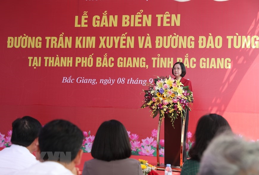 Hà Nội (TTXVN 8/9/2023) Ngày 8/9, Thông tấn xã Việt Nam phối hợp với thành phố Bắc Giang tổ chức Lễ Gắn biển tên đường mang tên nhà báo, liệt sĩ của TTXVN là Nhà báo Trần Kim Xuyến và Nhà báo Đào Tùng.