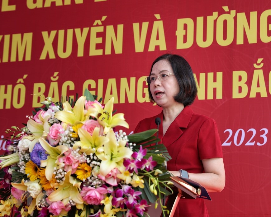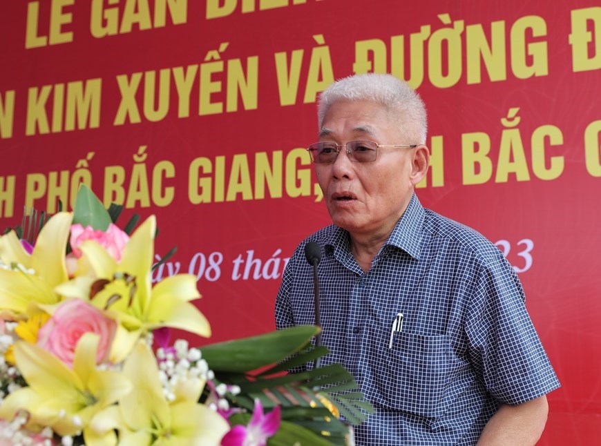 Phó Chủ tịch UBND thành phố Bắc Giang Đào Công Hùng công bố quyết định đặt tên 2 đường Đào Tùng và Trần Kim Xuyến (Ảnh: Danh Lam/TTXVN)