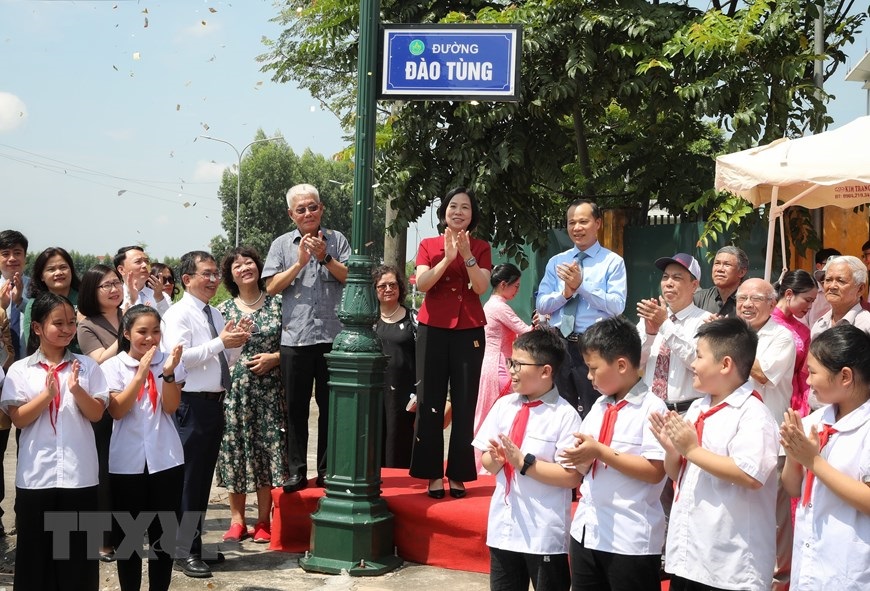 Nghi lễ gắn biển tên đường mang tên Đào Tùng - nguyên Tổng giám đốc kiêm Tổng biên tập TTXVN. (Ảnh: Danh Lam/TTXVN)