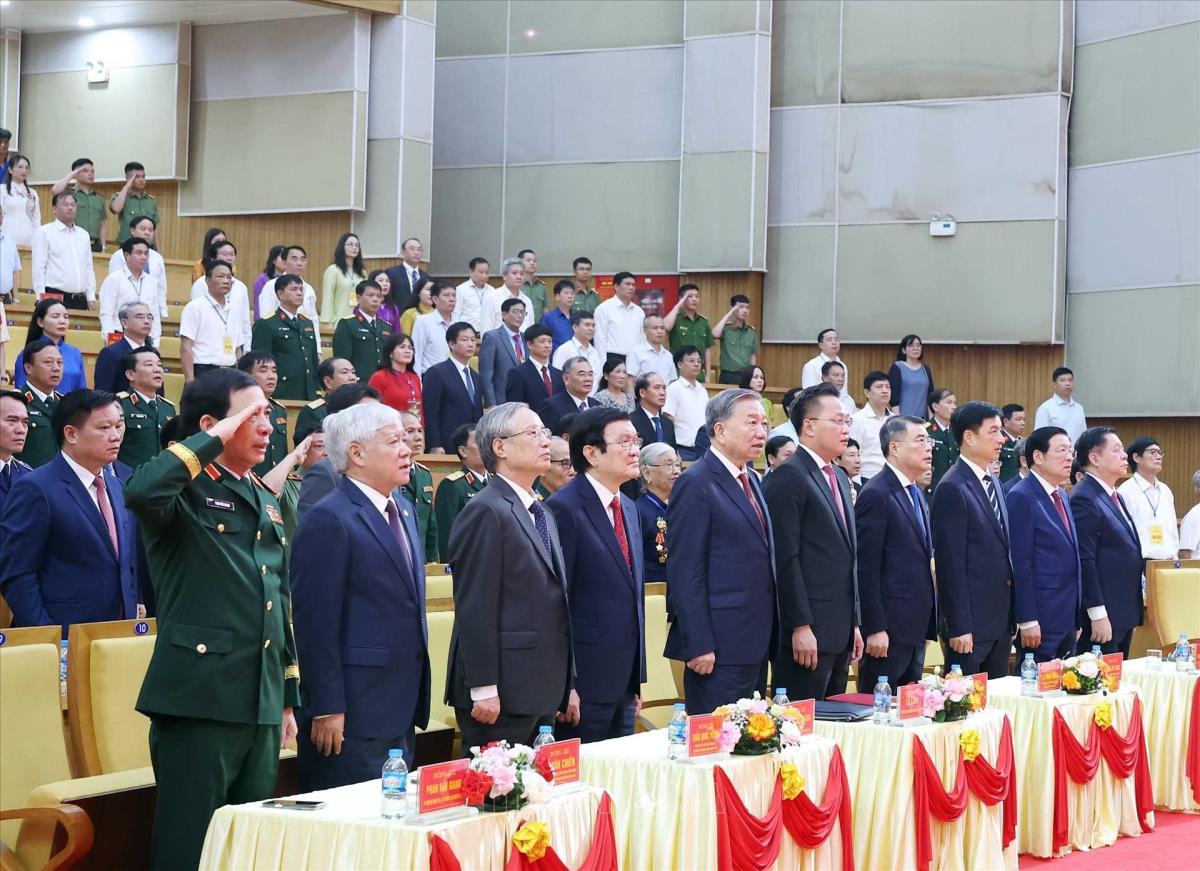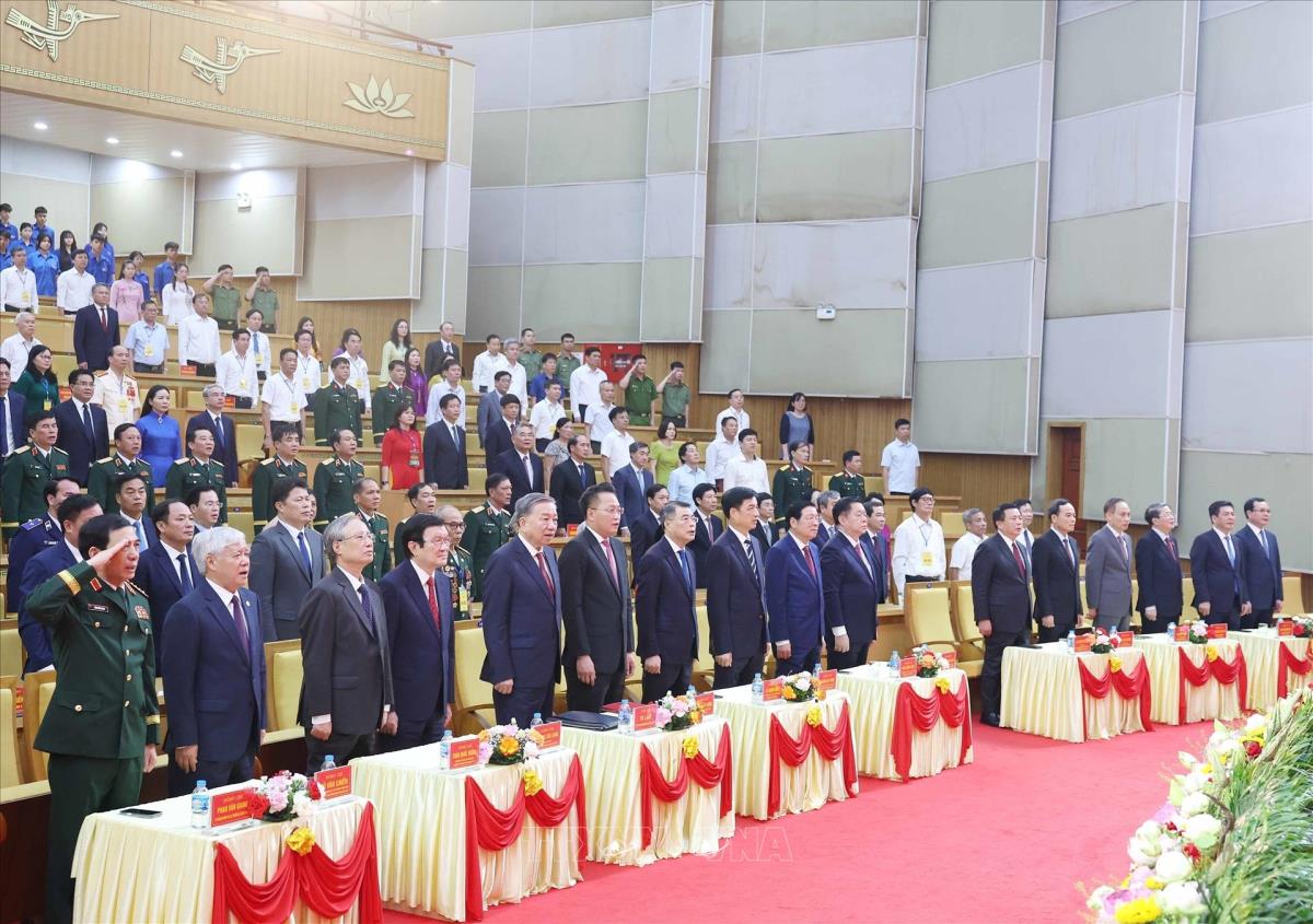 Tổng Bí thư Tô Lâm cùng các đồng chí lãnh đạo, nguyên lãnh đạo Đảng, Nhà nước dự Lễ kỷ niệm (1/7/2025). Ảnh: Thống Nhất – TTXVN