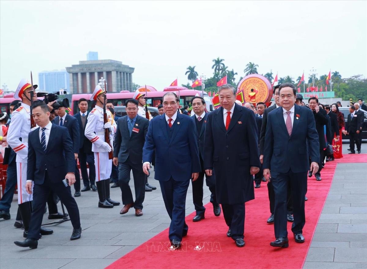 Tổng Bí thư Tô Lâm cùng các đồng chí lãnh đạo, nguyên lãnh đạo Đảng, Nhà nước đến dự lễ kỷ niệm (6/1/2026). Ảnh: Trọng Đức - TTXVN