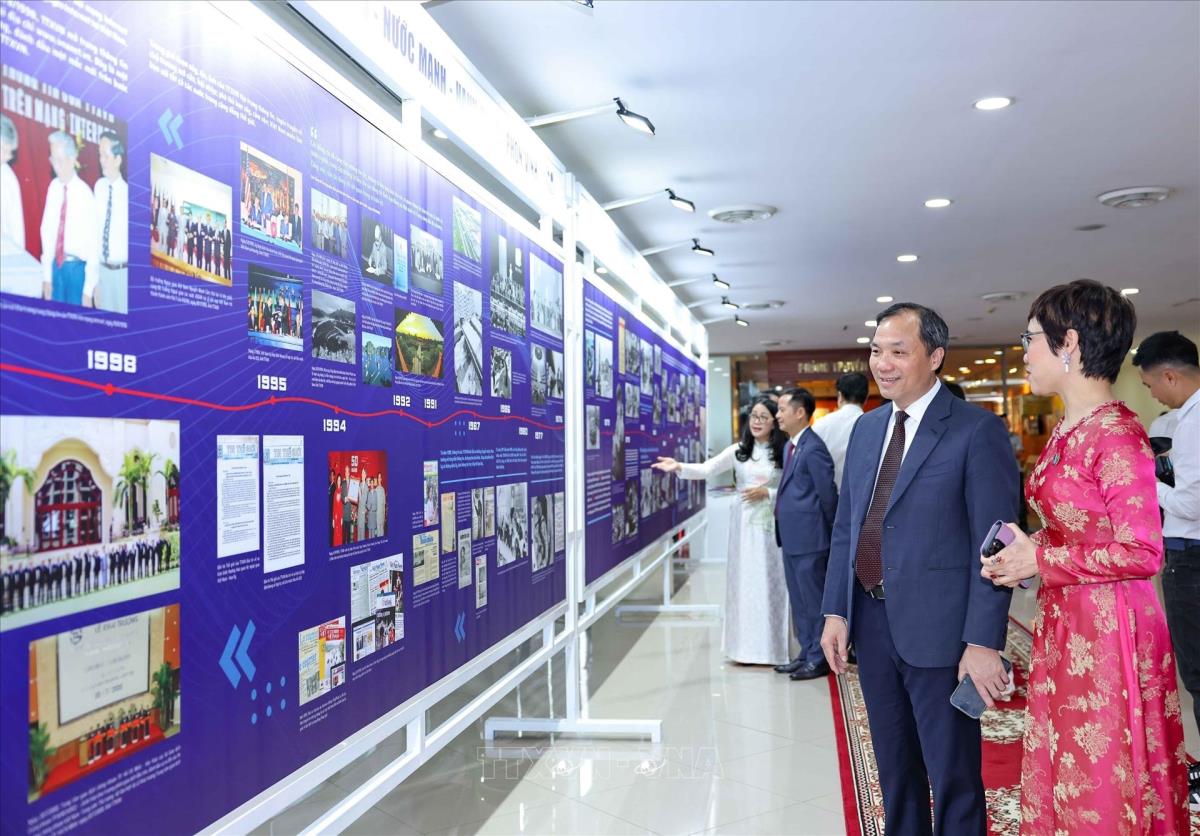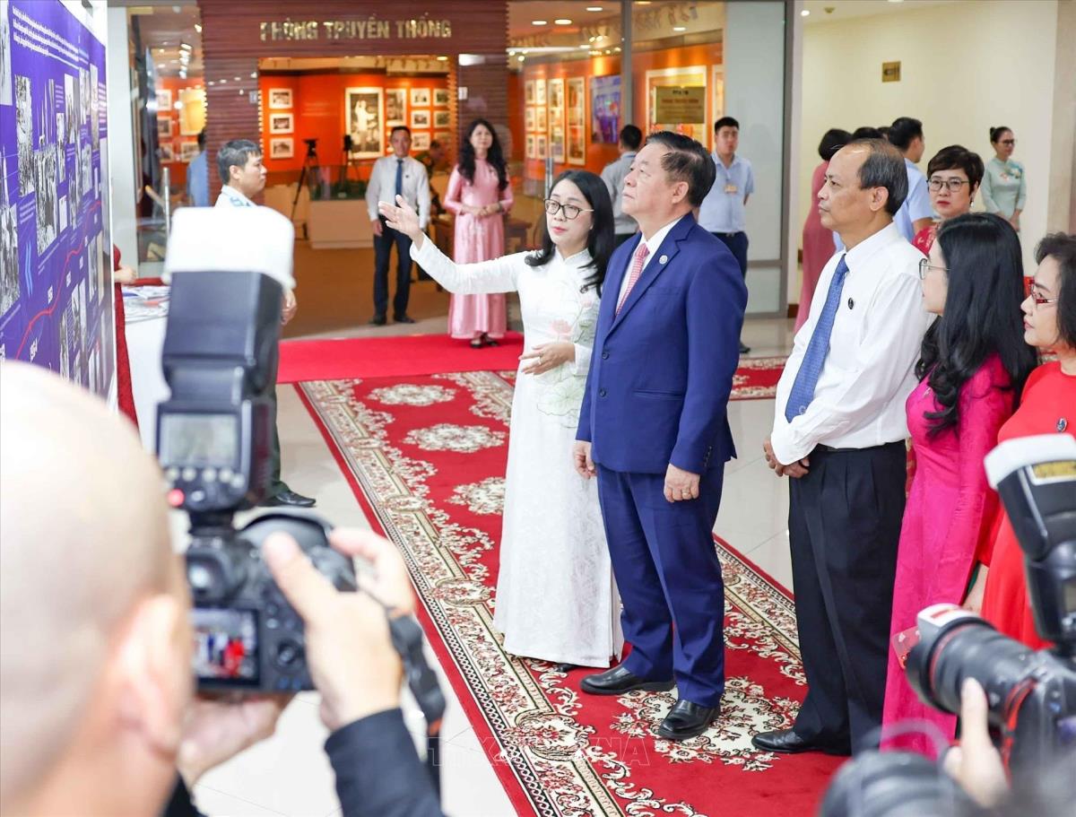 Các đại biểu tham quan trưng bày tư liệu 80 năm truyền thống TTXVN (14/9/2025). Ảnh: Thanh Tùng - TTXVN