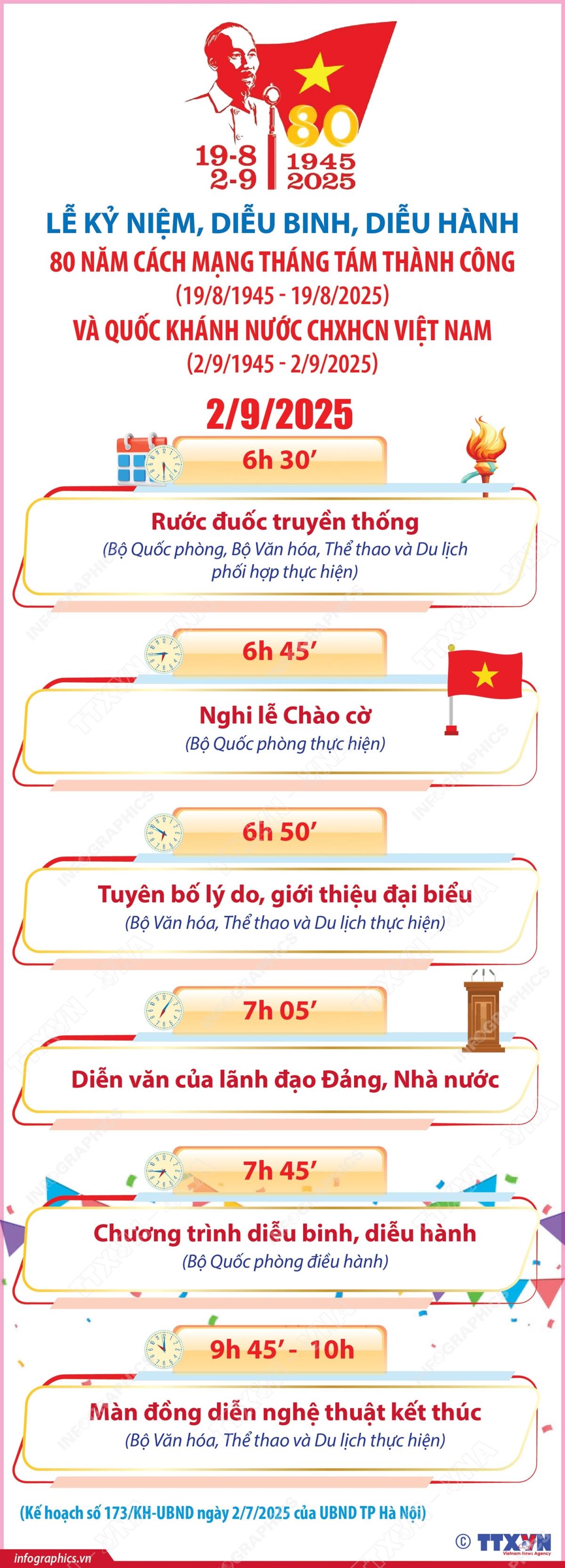 [Infographics] Lễ kỷ niệm, diễu binh, diễu hành 80 năm Cách mạng Tháng Tám thành công (19/8/1945 - 19/8/2025) và Quốc khánh nước CHXHCN Việt Nam (2/9/1945 - 2/9/2025)