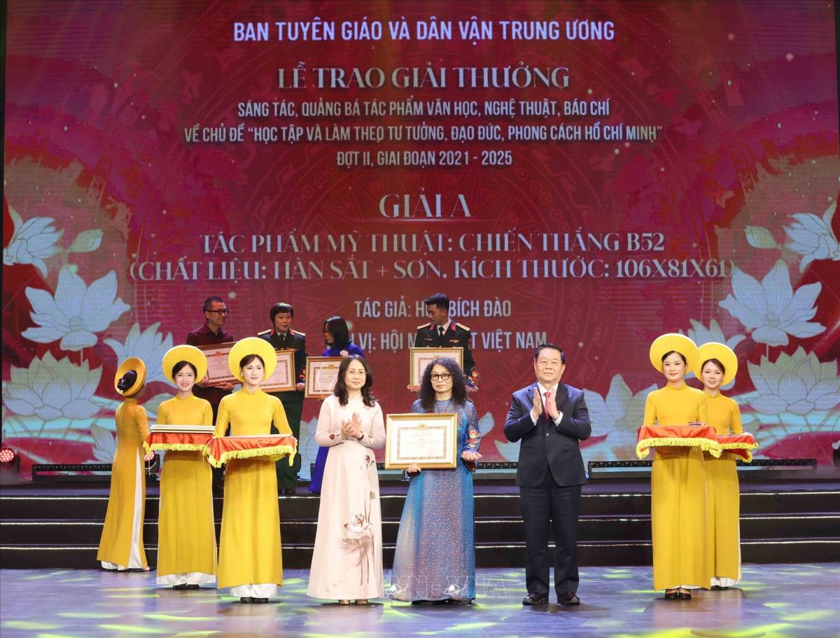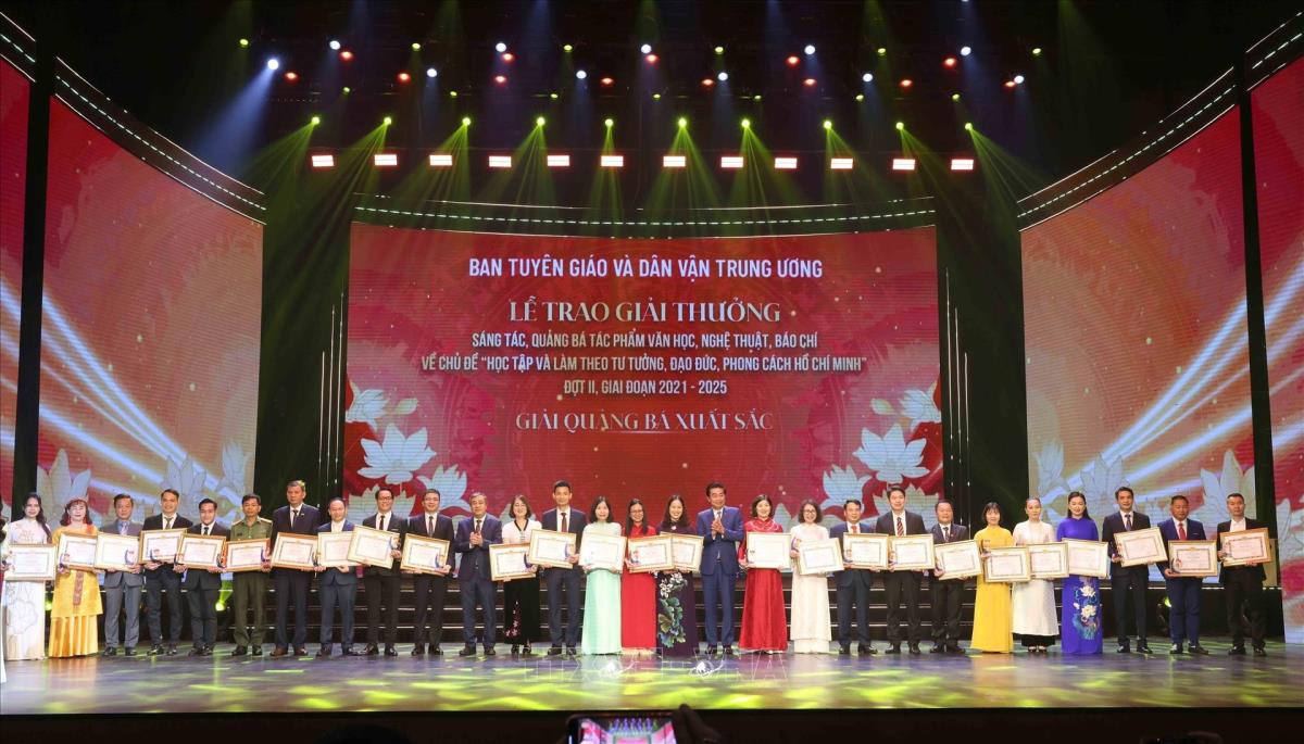 Hà Nội (TTXVN 19/5/2025) Nhân kỷ niệm 135 năm Ngày sinh của Chủ tịch Hồ Chí Minh (19/5/1890 – 19/5/2025), tối 19/5/2025, tại Hà Nội, Ban Tuyên giáo và Dân vận Trung ương tổ chức Lễ trao giải thưởng sáng tác, quảng bá tác phẩm văn học, nghệ thuật, báo chí về chủ đề “Học tập và làm theo tư tưởng, đạo đức, phong cách Hồ Chí Minh” đợt II giai đoạn 2021 – 2025.