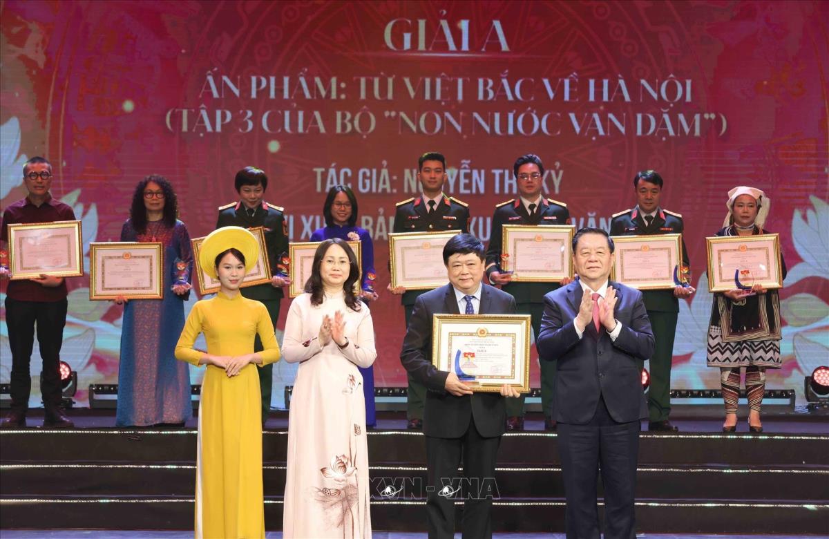 Tác giả Nguyễn Thế Kỷ nhận giải A (19/5/2025), Ảnh: Phương Hoa – TTXVN