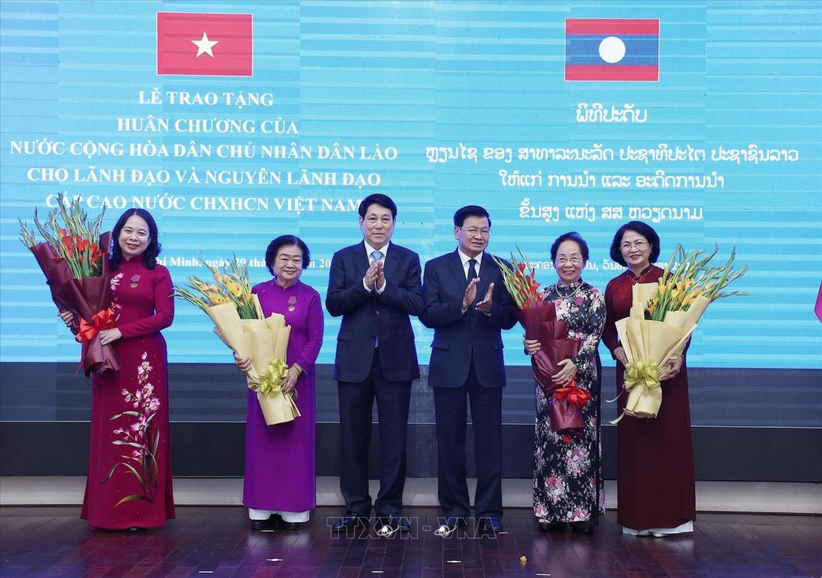 Hà Nội (TTXVN 29/4/2025) Chiều 29/4/2025, tại Thành phố Hồ Chí Minh, Chủ tịch nước Lương Cường và Tổng Bí thư, Chủ tịch nước Lào Thongloun Sisoulith chủ trì Lễ trao Huân chương của Đảng, Nhà nước Lào tặng Lãnh đạo và nguyên Lãnh đạo cấp cao nước Cộng hoà xã hội chủ nghĩa Việt Nam.