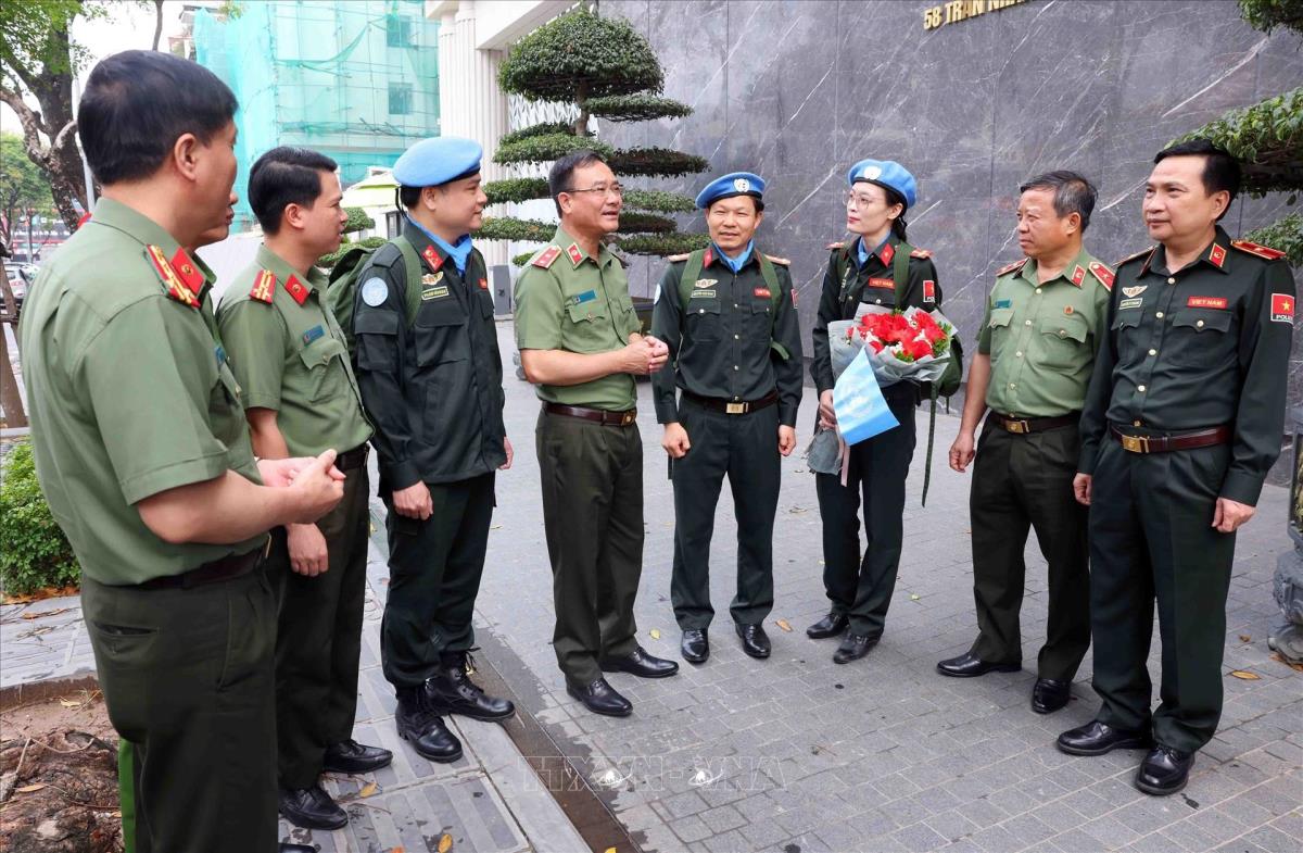Các sĩ quan Công an nhân dân lên đường thực hiện nhiệm vụ gìn giữ hòa bình Liên hợp quốc tại Phái bộ UNMISS (Cộng hòa Nam Sundan) (25/4/2025). Ảnh: Phạm Kiên – TTXVN
