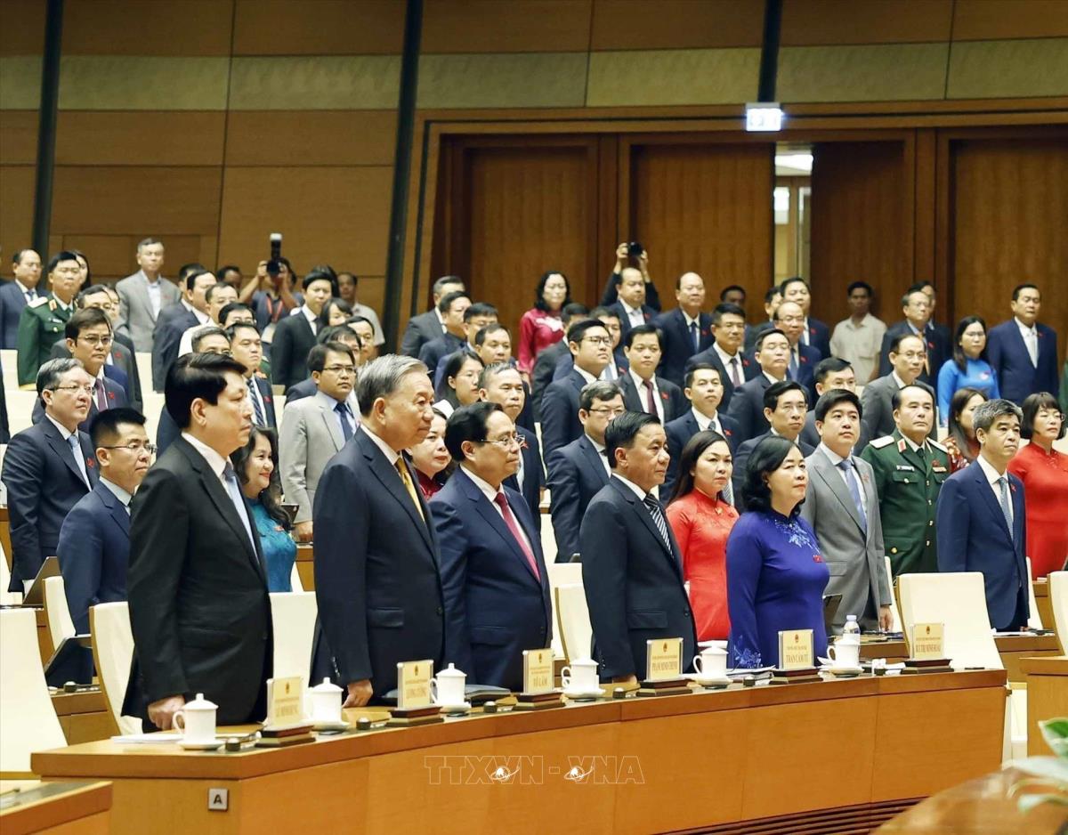Tổng Bí thư, Chủ tịch nước Tô Lâm và các đại biểu tham dự Lễ tuyên thệ của Thủ tướng Chính phủ Lê Minh Hưng (7/4/2026). Ảnh: Thống Nhất – TTXVN