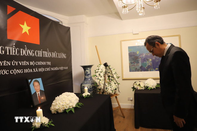 Theo phóng viên TTXVN tại London, Đại sứ quán Việt Nam tại Anh treo cờ rủ, tổ chức lễ viếng và mở sổ tang tưởng niệm nguyên Chủ tịch nước Trần Đức Lương theo nghi thức quốc tang.