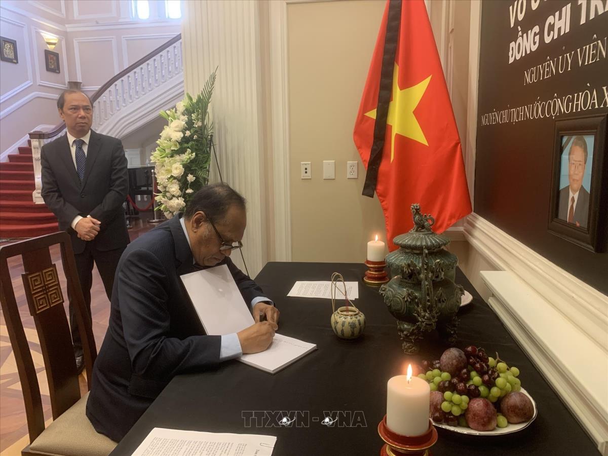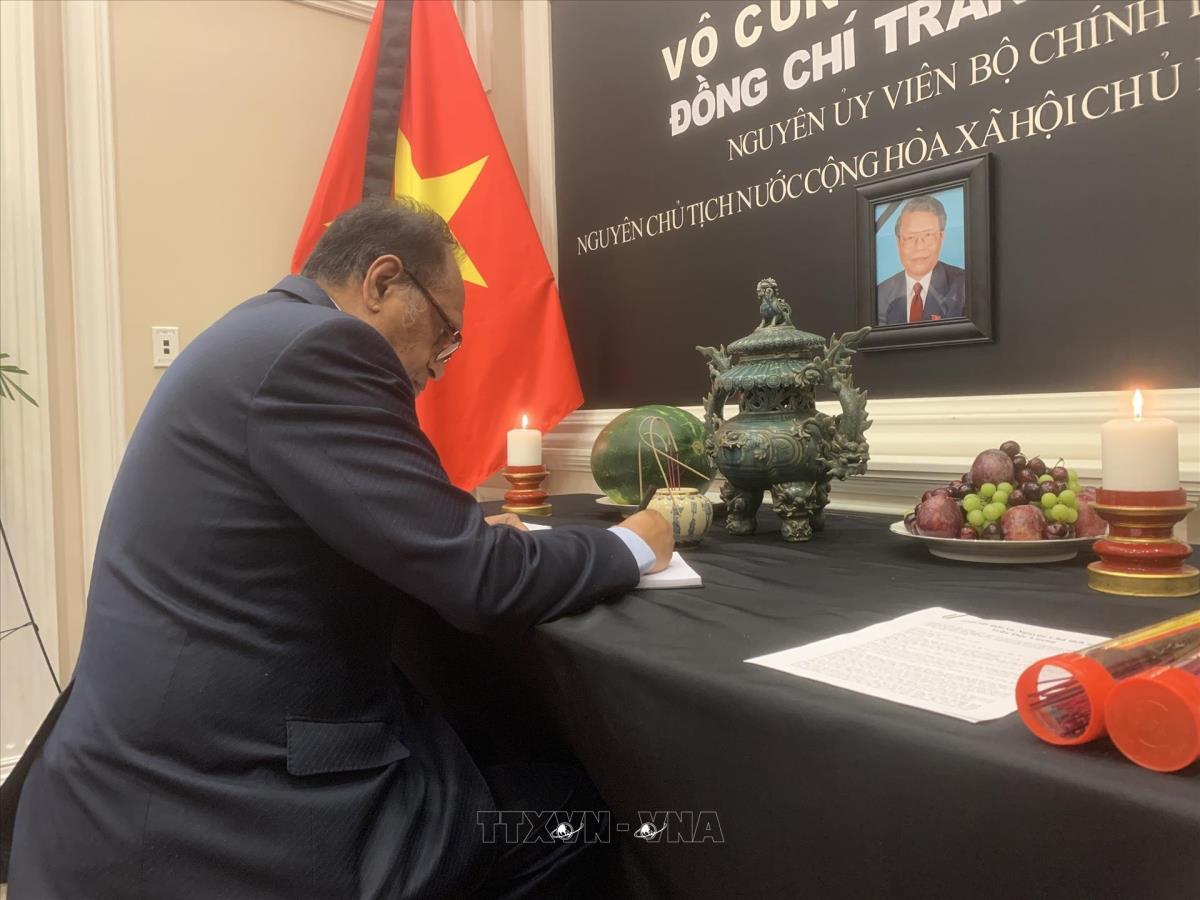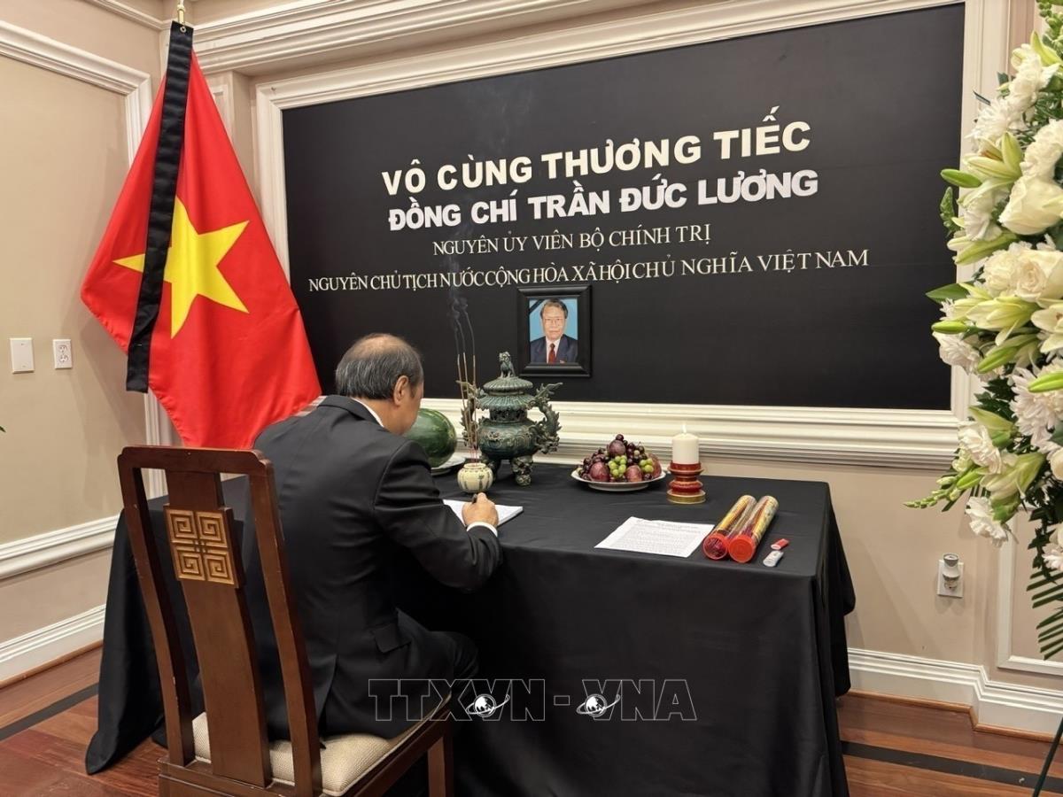 Hà Nội (TTXVN 25/5/2025) Sáng 24/5/2025 (giờ địa phương), Đại sứ quán Việt Nam tại Mỹ tổ chức lễ viếng và mở sổ tang tưởng niệm đồng chí Trần Đức Lương, nguyên Ủy viên Bộ Chính trị, nguyên Chủ tịch nước Cộng hòa Xã hội chủ nghĩa Việt Nam.