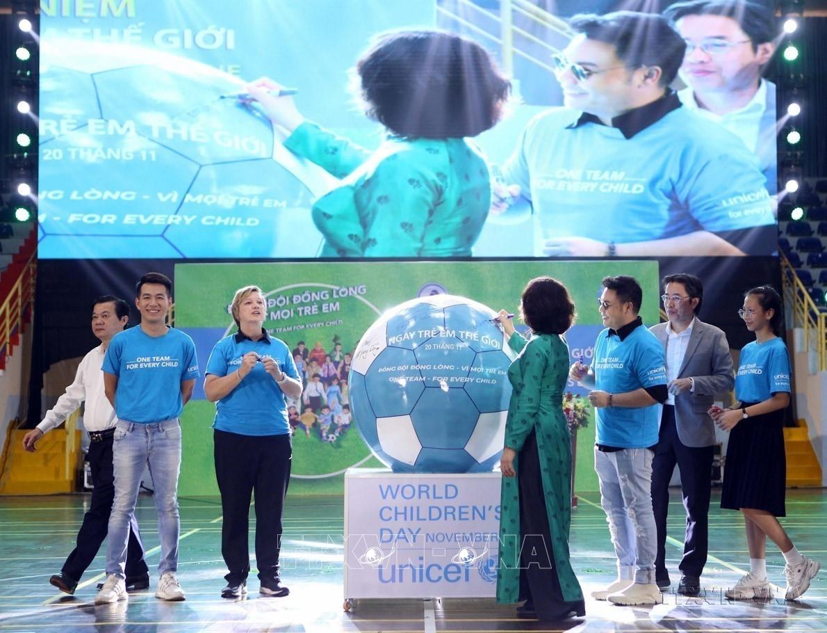 UBND thành phố Đà Nẵng và Quỹ Nhi đồng Liên hợp quốc (UNICEF) Việt Nam phối hợp tổ chức Lễ kỷ niệm Ngày Trẻ em Thế giới năm 2022, với thông điệp “Đồng đội, đồng lòng vì mọi trẻ em”. Ảnh: Trần Lê Lâm - TTXVN