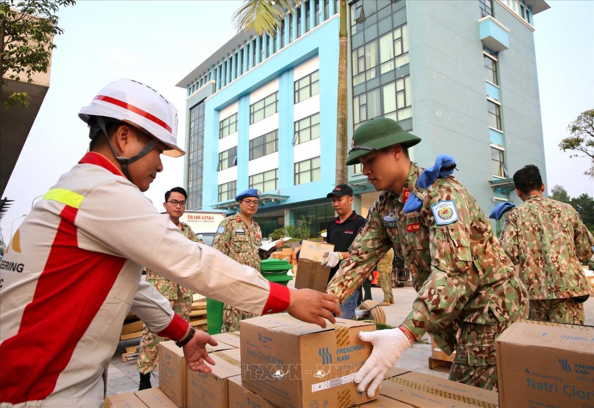 Lực lượng Bệnh viện dã chiến cấp 2 số 2 của Việt Nam tập kết trang thiết bị chuẩn bị lên đường tham gia Gìn giữ hoà bình Liên Hợp quốc (2019). Ảnh: Dương Giang - TTXVN