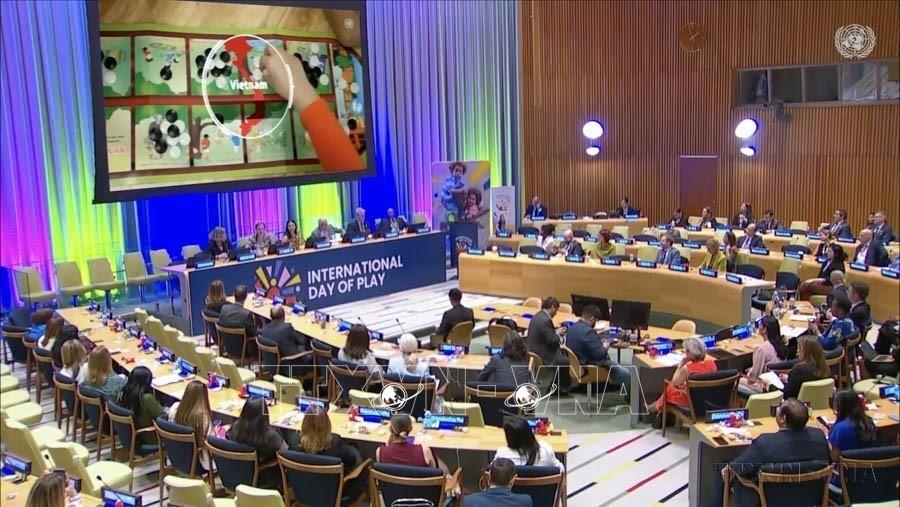 Ngày 11/6/2024, tại New York (Mỹ), Việt Nam cùng các nước Nhóm nòng cốt thúc đẩy Nghị quyết 78/268 của Đại hội đồng Liên hợp quốc (LHQ) tổ chức các hoạt động lần đầu tiên kỷ niệm Ngày Quốc tế Vui chơi theo sáng kiến của Việt Nam. Ảnh: Thanh Tuấn - TTXVN