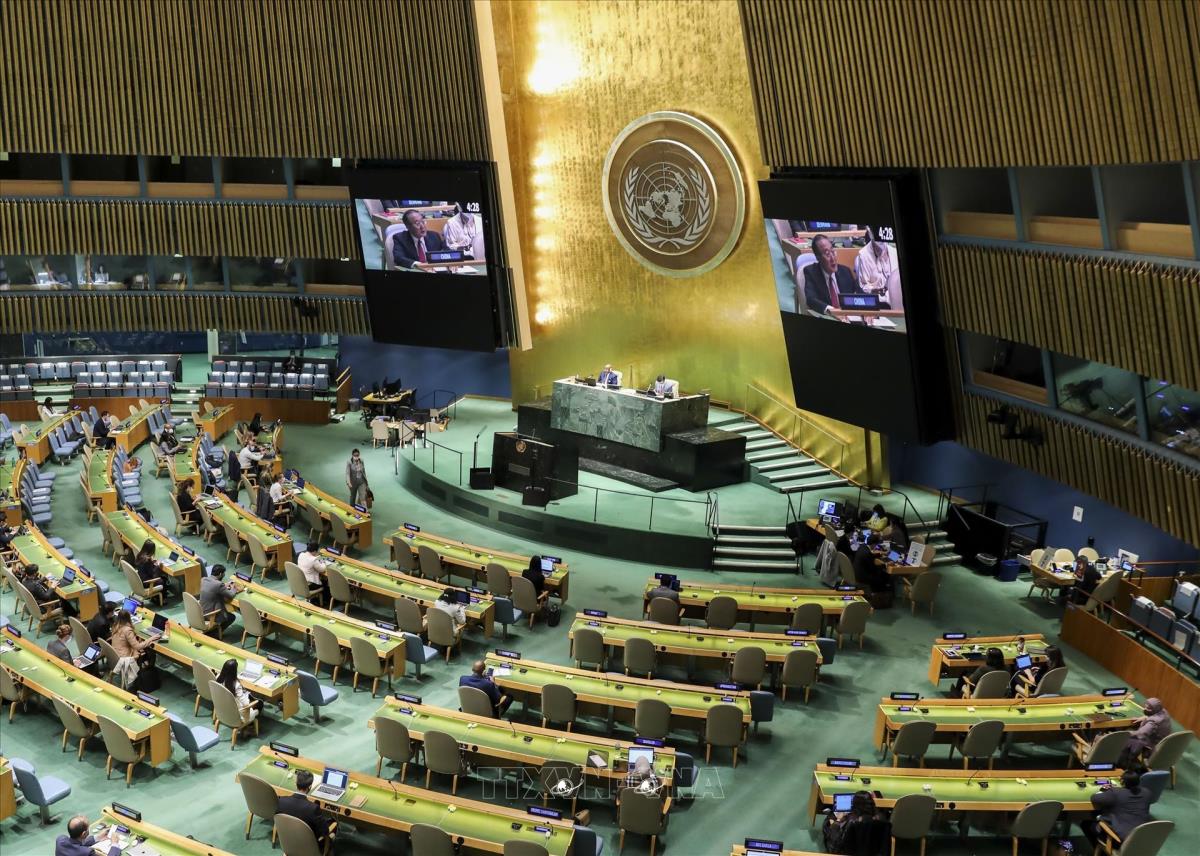 Liên hợp quốc đã đóng vai trò quan trọng trong việc xây dựng sự đồng thuận quốc tế trong những nỗ lực thúc đẩy phát triển. Trong ảnh: Khoảng 75 quốc gia trên thế giới đã kêu gọi sự đoàn kết toàn cầu vì công bằng vaccine tại Phiên thảo luận chung của Ủy ban thứ 3 thuộc Đại hội đồng Liên hợp quốc (ĐHĐ LHQ), ngày 1/10/2021. Ảnh: TTXVN phát