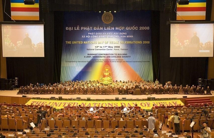 Đại lễ Phật đản Vesak Liên Hiệp Quốc là một trong những sự kiện văn hóa quốc tế quan trọng nhằm tôn vinh các giá trị nhân văn và hòa bình toàn cầu.Sự kiện này được tổ chức hằng năm tại trụ sở chính của Liên Hiệp Quốc ở New York (Mỹ) và tại các văn phòng khu vực của Liên Hiệp Quốc. Trong ảnh: Đại lễ Phật đản Vesak Liên Hiệp Quốc được tổ chức tại Hà Nội (2008). Anh: TTXVN