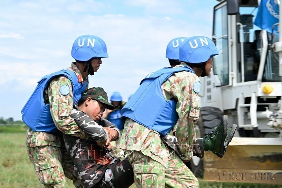 Bộ Quốc phòng Việt Nam phối hợp với Bộ Quốc phòng Nhật Bản tổ chức buổi diễn tập đánh giá năng lực của quân nhân Gìn giữ hòa bình Liên Hợp quốc (20/9/2023). Ảnh: TTXVN phát