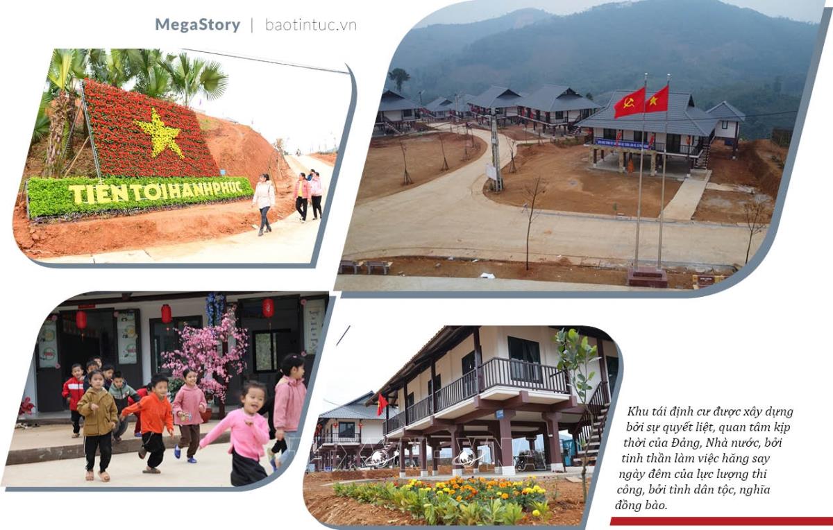 Nằm trên đồi cao rộng 10 ha còn có nhà sinh hoạt cộng đồng rộng 300 m2; một điểm trường rộng 200 m2 gồm hai lớp tiểu học và hai lớp mẫu giáo, đầy đủ hệ thống viễn thông, điện nước. Cả khu làng mới bắt đầu rộn tiếng trẻ ê a tập học chữ, những bài hát yêu Tổ quốc, yêu quê hương hay thậm chí là cả tiếng khóc đòi mẹ vì chưa quen tới lớp. Những âm thanh rất đỗi đời thường sau ba tháng vắng bóng đã dần trở lại trên vùng tái định cư này.