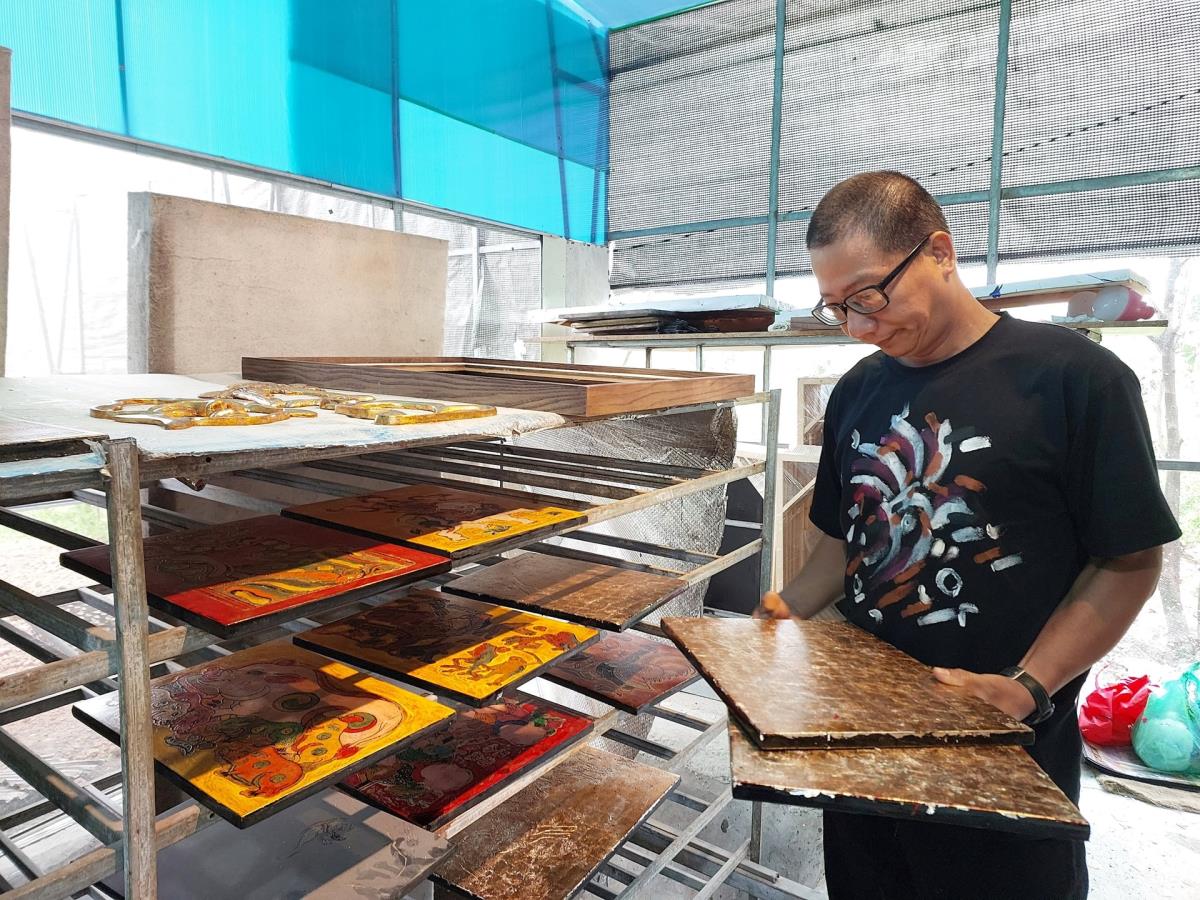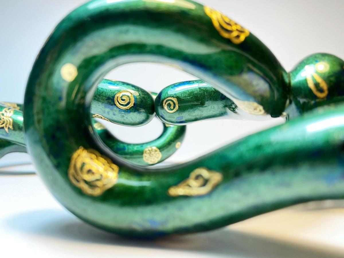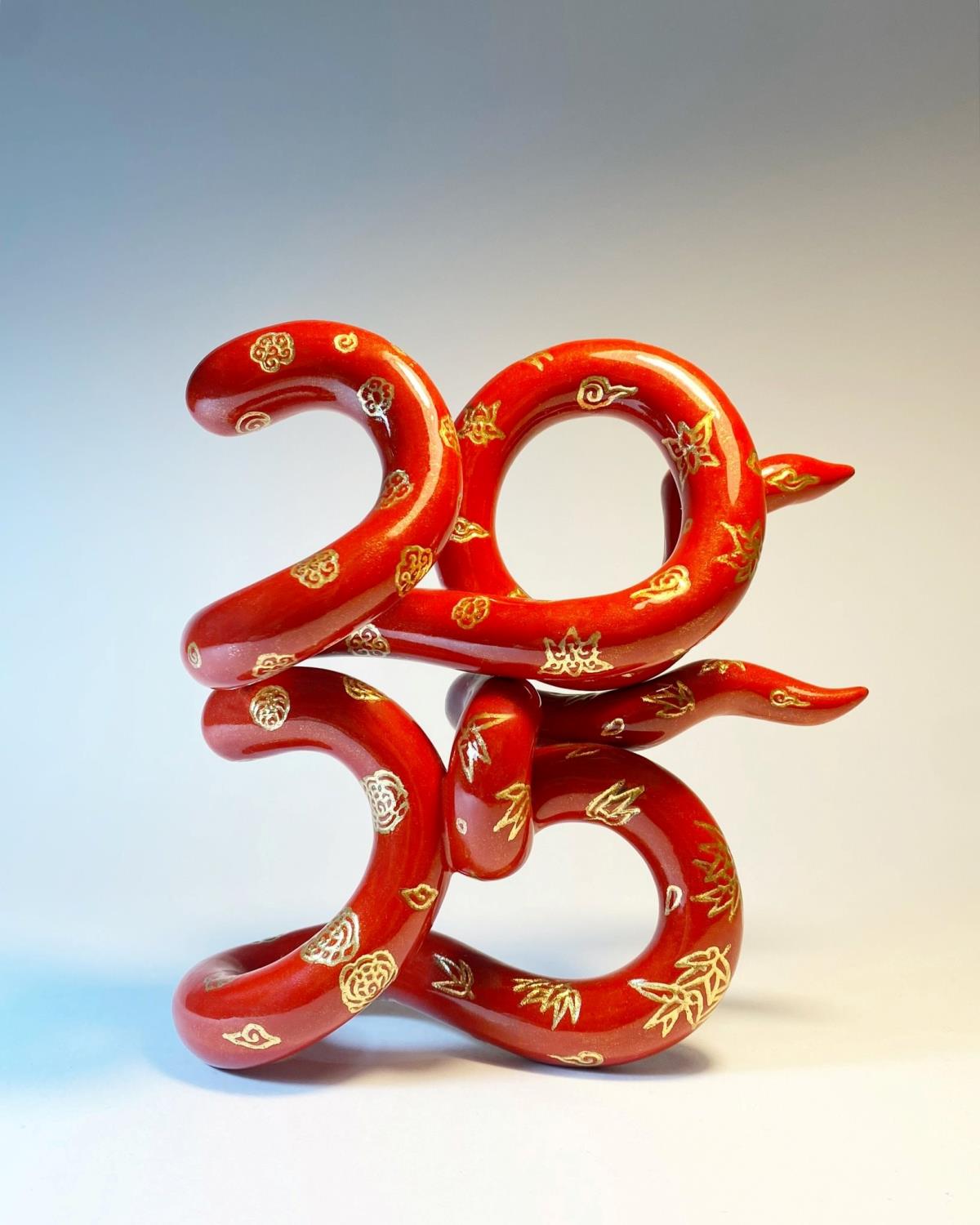 Cũng chung tình yêu với sơn mài truyền thống, họa sỹ Lê Huy (Lamphong Studio) sáng tạo tác phẩm “TY.” với hình ảnh một đôi Rắn quấn lấy nhau, mang ý nghĩa tròn đầy, sung túc.