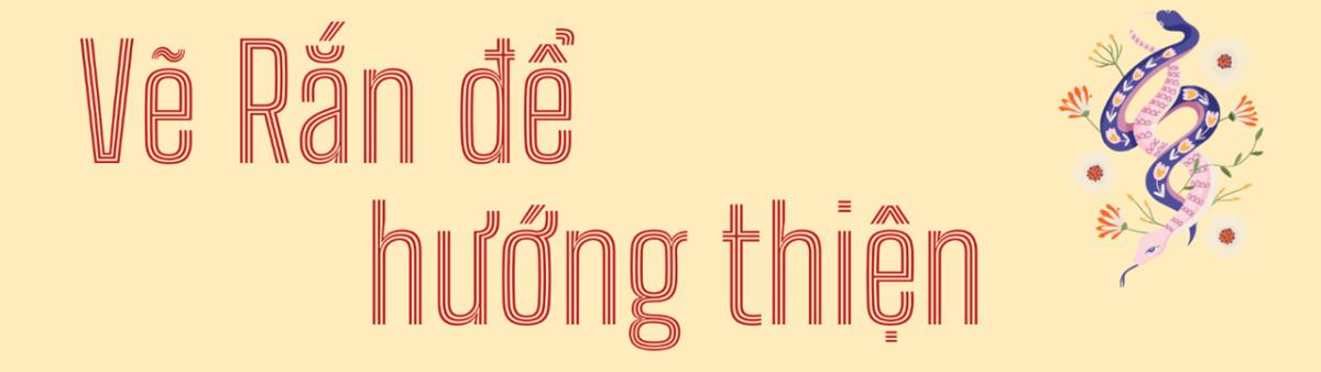 “Rắn thường có tập tính là lột da để phát triển ngày một lớn hơn, hoàn thiện hơn, vì vậy Rắn là biểu tượng của sự mới mẻ và cũng tượng trưng cho sự mềm dẻo, uyển chuyển trong cuộc sống để vượt qua những chướng ngại vật. Bức tranh Rắn uốn mình thành chữ Phúc, trong Phúc lại có nhiều biểu tượng mang ý nghĩa tốt lành sẽ là món quà ý nghĩa trong dịp Xuân mới,” họa sỹ Lương Minh Hòa cho biết.