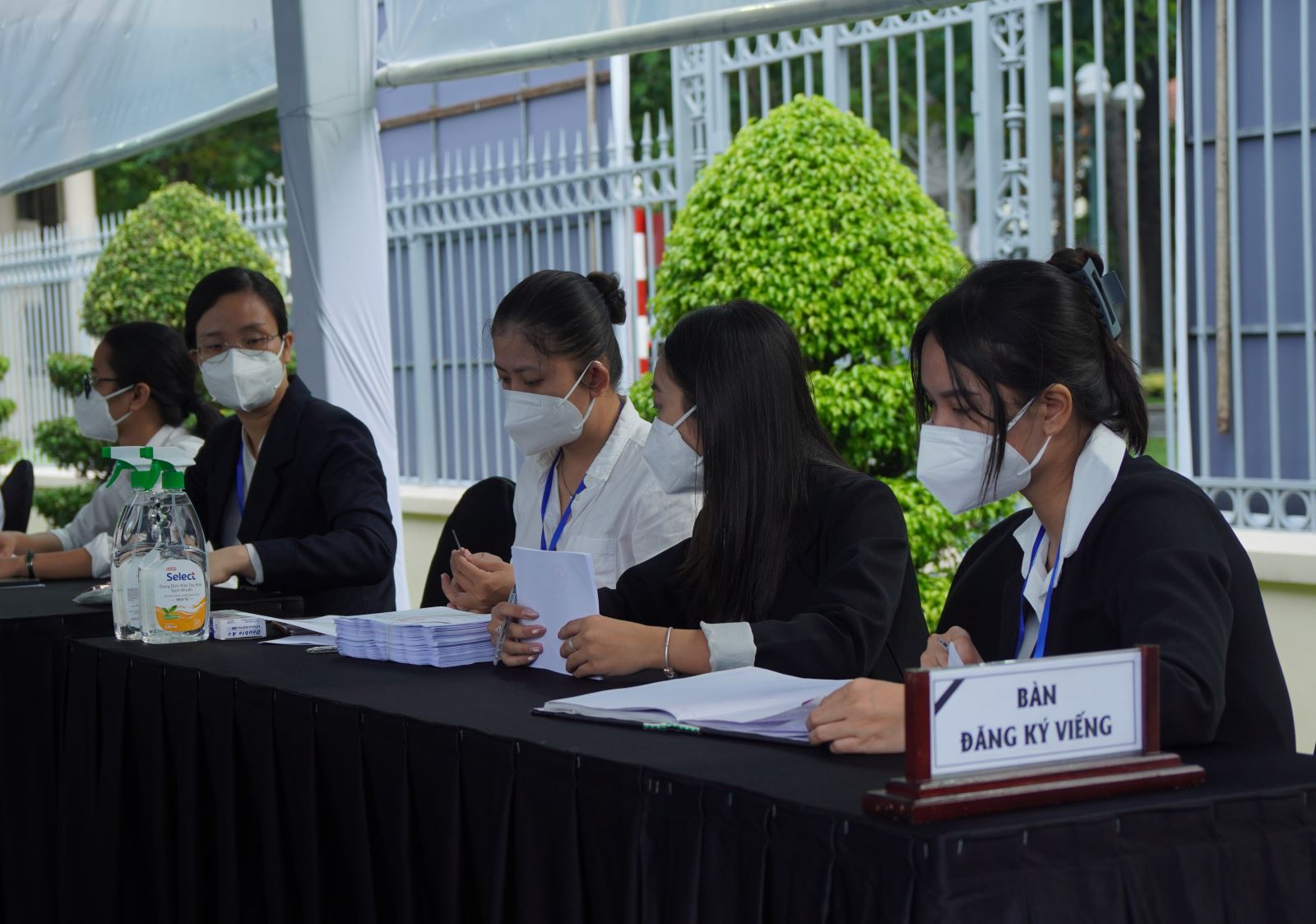 Các đoàn vào viếng đăng kí thông tin cho ban tổ chức, sau đó qua khu vực kiểm tra an ninh (24/5/2025). Ảnh: TTXVN