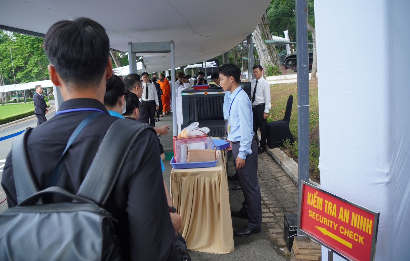 Các đơn vị, ban ngành... kiểm tra an ninh trước khi vào viếng (24/5/2025). Ảnh: TTXVN